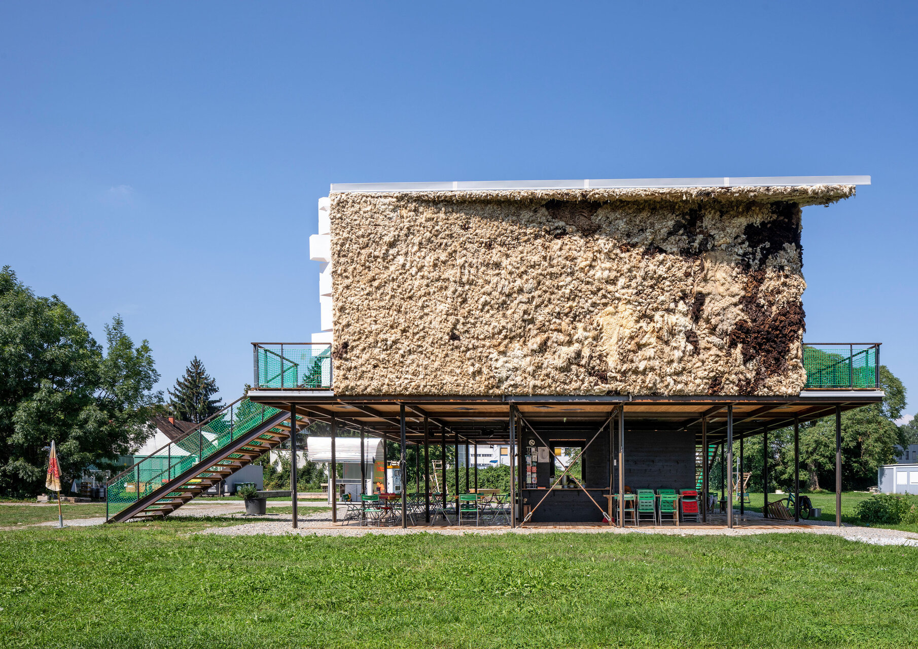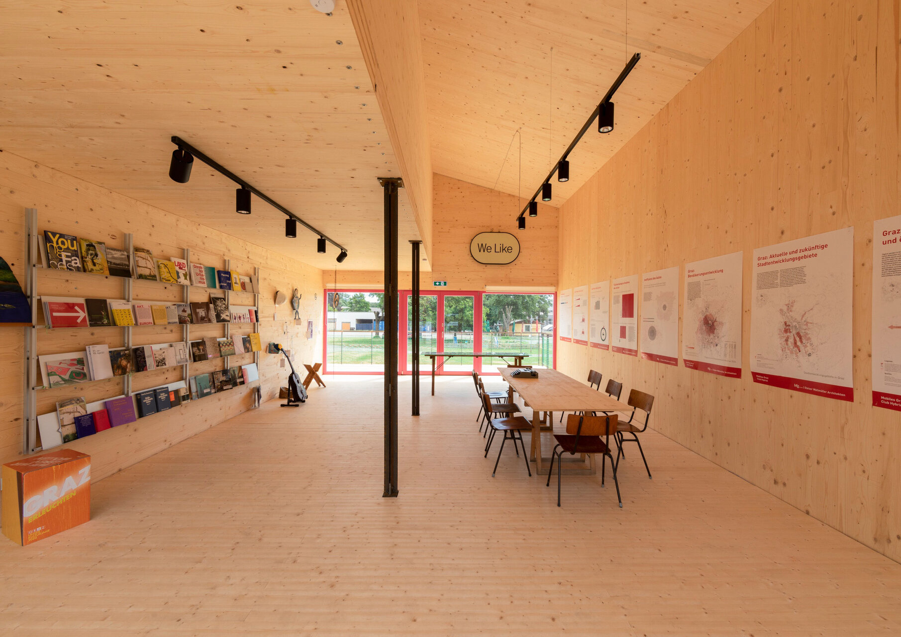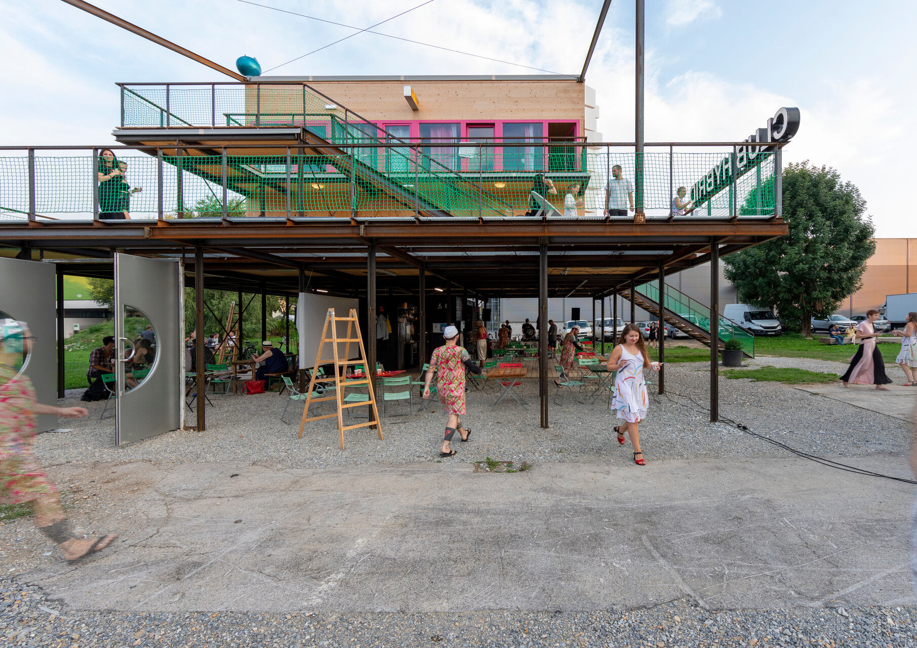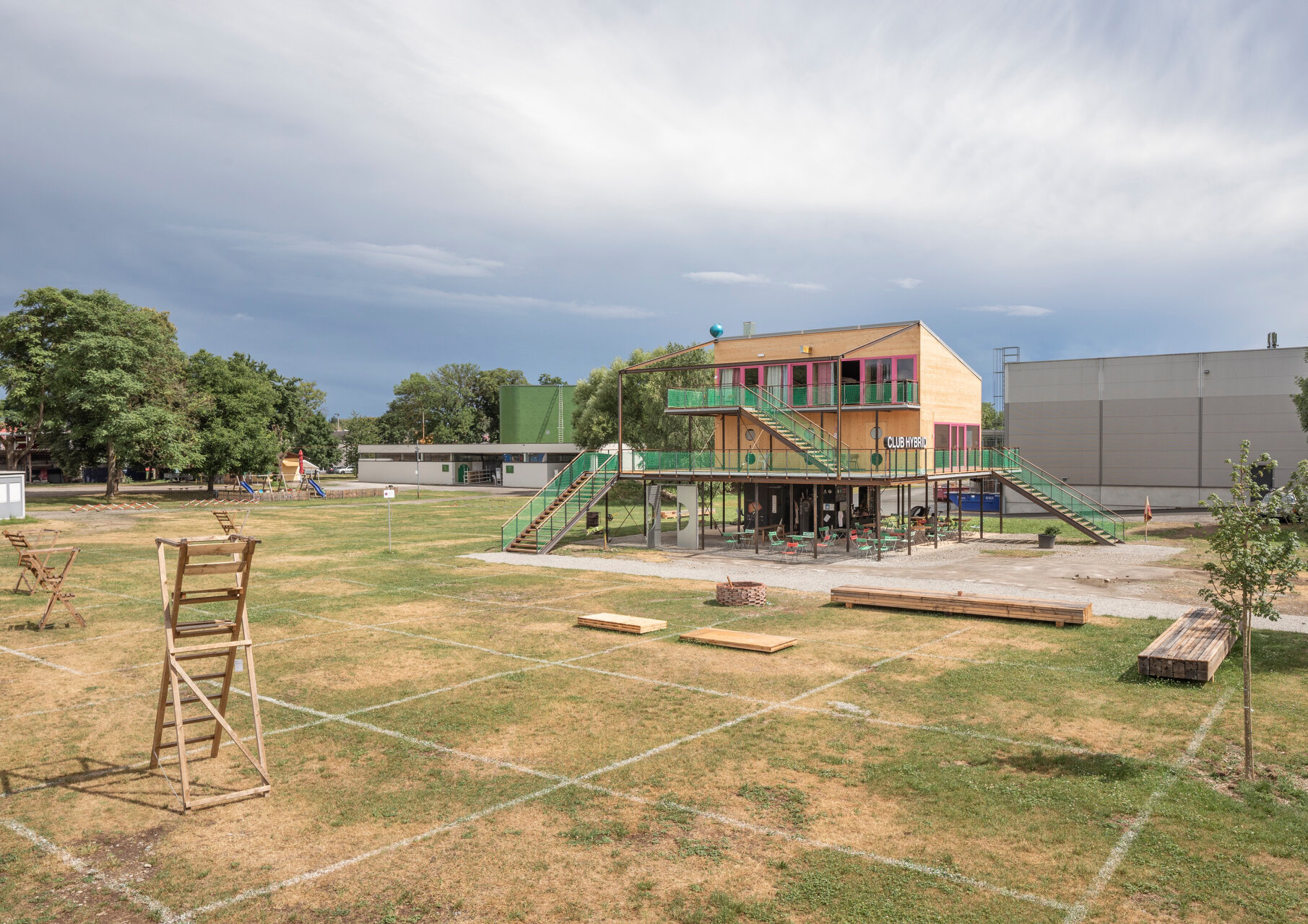 Es entstand ein benutzbarer Rohbau, der mit einem Minimum an verlorenen Mitteln ein Maximum an urbanen Spielräumen und Aufmerksamkeiten einbrachte und in den 66 Spieltagen seinen Praxis-Test bestanden hat. Der hybride Ansatz des Clubs besteht auch darin, dass er die Grenzen zwischen Planung, Kultur, Politik, Entertainment, Diskurs, Kritik, Party offenhält. Was sich in der Offenheit der Architektur artikuliert, ist eine Mikro-Urbanität als Impuls und als Angebot für die Stadt und die Menschen. Im Sommer 2022 wird das Club-Leben auf der Herrgottwiese fortgesetzt. (Text: Architekt:innen)