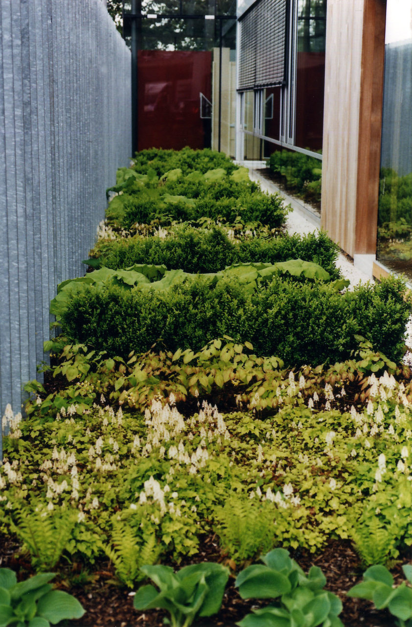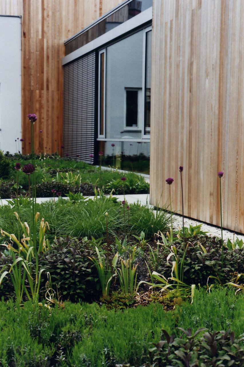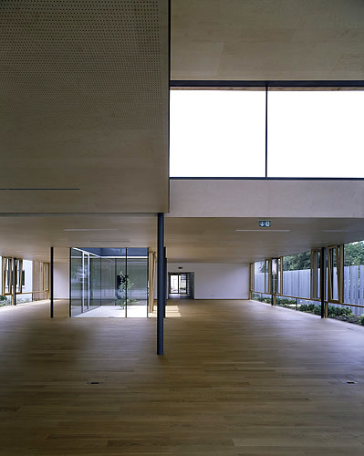 Die Klarheit der Raumorganisation, die Sorgfalt in der Materialverarbeitung (Bodenbeläge aus Eiche geölt, Wände und Decken aus Birkensperrholz) sowie die feine Behandlung der Außenbereiche bzw. Begrenzung zu den Nachbargrundstücken zeigen, dass auch im Industriebau räumliche Qualitäten erreichbar sind, die selbst einem Wohnhaus zur Ehre gereichen würden. (Text: Gabriele Kaiser)