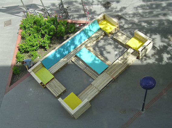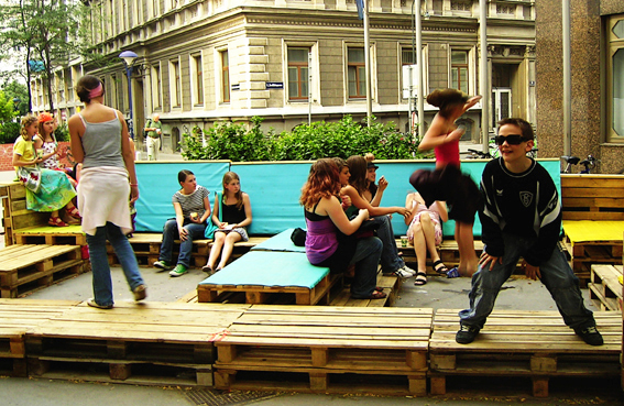 Jugendliche haben im öffentlichen Raum kaum Platz, meistens müssen sie sich auf Kinderspielplätzen einrichten oder sich in für Erwachsene geplanten Plätzen arrangieren. Nicht an Jugendlichen vorbeiplanen, sondern die Kreativität der Jugendlichen selbst und ihr Anspruch an den öffentlichen Raum waren im Rahmen eines Workshops gefragt. Die Schüler und Schülerinnen der Stubenbastei hatten die Möglichkeit, begleitet von den OPK-Planer:innen ihre Erforschung des Sitzens und Liegens im öffentlichen Raum in die temporäre Gestaltung ihres Schulvorbereichs einfließen zu lassen. Aus mehreren Modellen wurde Projekt Eight, eine Sitzlandschaft in Form einer Acht, als jenes bestimmt, das den Gebrauchswert der 13-Jährigen am besten formuliert: ein Element, das für mehrere Nutzungen offen ist und das zum Aufenthalt einlädt. Das gemeinsame Bauen aus vorgefertigten, stapelbaren Europaletten erweiterte die Forschung auf angewandte Weise, das Jugendmöbel konnte für 11 Tage getestet werden.Text: OPK