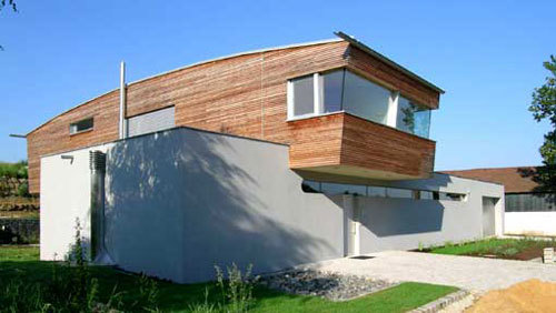 Doch stattdessen zeigte der Architekt dem Bauherrn drei realisierte Häuser. Außen konnte er sich nicht so recht begeistern, vom hellen Innenleben mit Lufträumen und Galerien im Wohnbereich war er jedoch begeistert.