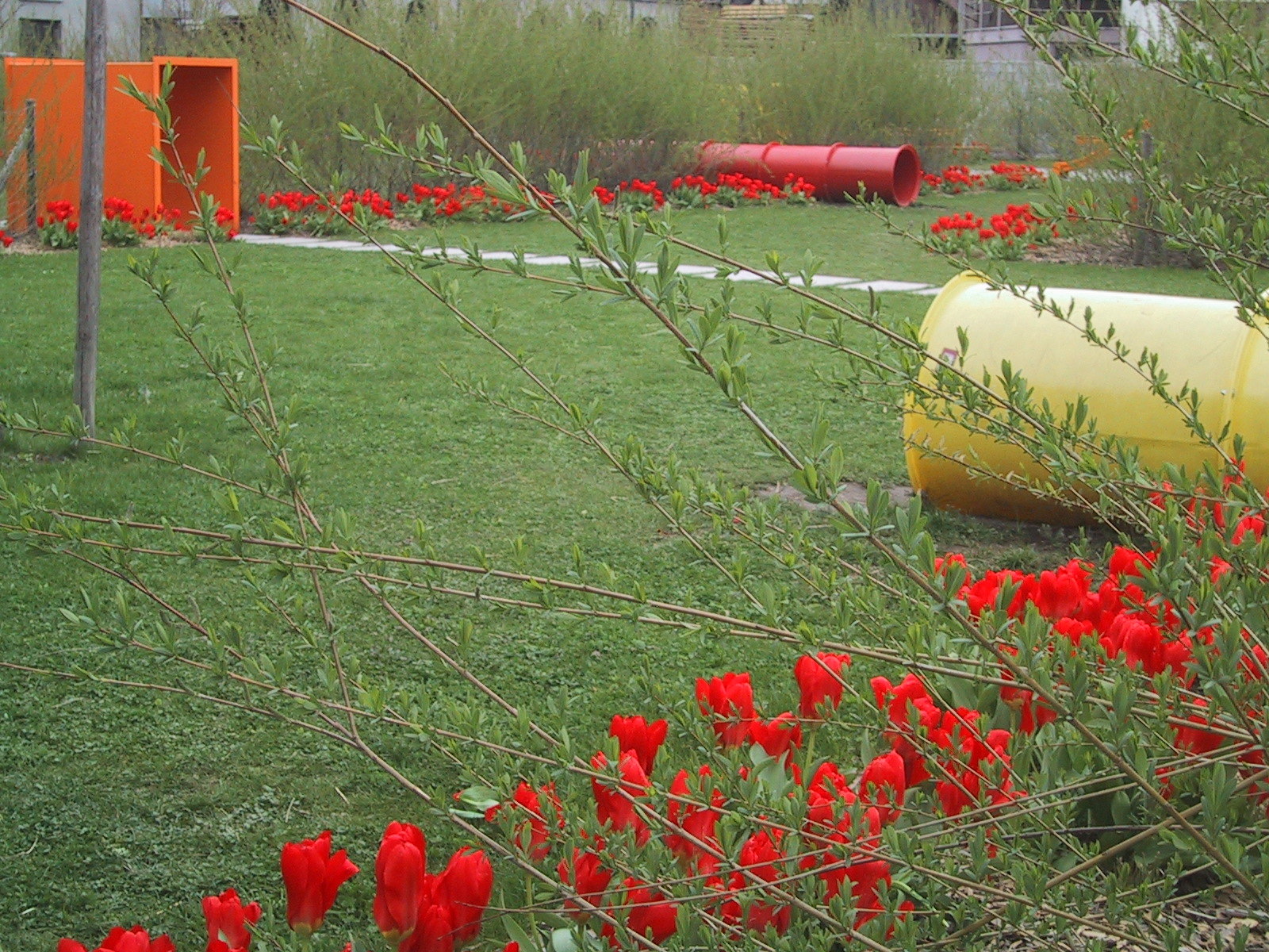 Der ehemalige Villengarten hat den verwunschenen Charme eines „Dornröschengartens“: Er ist von Buchshecken und weiß blühenden Strauchrosen umschlossen. Verschlungene Wege führen zwischen verschiedenen Koniferen und altehrwürdigen Parkbäumen hindurch. Klammerförmige Weidenhecken bilden eine räumlich reich gegliederte Spiellandschaft mit differenziert ausgestatteten Spielinseln. Der klar gefasste, mit Seerosen und Binsen bepflanzte Wassergarten bildet zusammen mit der berankten Pergola einen poetischen Ort mit besonderer Aufenthaltsqualität.