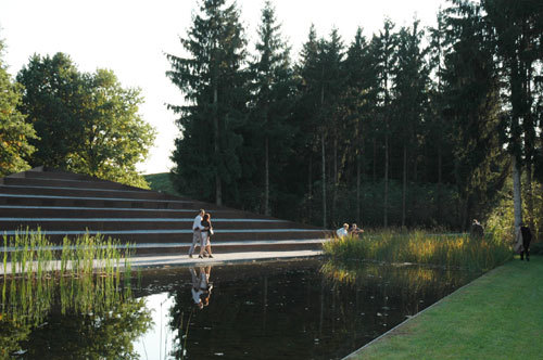 Im nördlichen Teil des Berggartens bleiben die vorhandenen Einzelbäume in den Pyramidenzwischenräumen weitgehend erhalten. Im südlichen Teil dominiert der bestehende Fichtenwald, der mit Waldstauden, Farnpflanzen, etc. angereichert wird. Darin eingeschnitten ist der neue Waldweiher, eine Antipode zum belebten Badesee. In vorhandenen Lichtungen wird hier eine künstliche Topographie erzeugt und somit eine räumliche Erlebnisvielfalt verstärkt. (...)