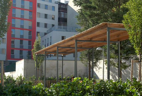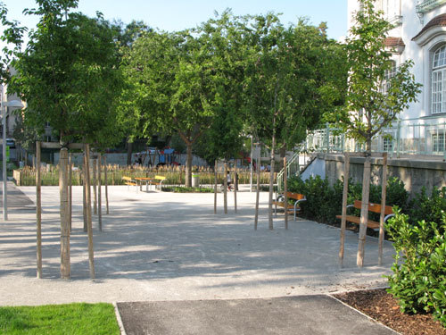 Die Mollardgasse mit einer gut entwickelten Zürgelbaum-Reihe wird zu einer von Gräser- und Staudenstreifen begleiteten Promenade aufgewertet. Eine Abfolge von Rankelementen reflektiert die Baumreihe. Entlang der Promenade öffnen sich Gartenzimmer mit unterschiedlichen Nutzungsangeboten: Gartenterrasse mit den 80er-Jahre Rondeaus, Piazza mit einer zarten Pergola, Brunnenplatz und Spielplätze. In der Wallgasse als Querachse schließt ein Tatarenahorn-Boskett mit flammender Herbstfärbung den Grünraum zum Gürtel ab. Der Jugendbereich ist mit einer begrünten Lärmschutzwand abgeschirmt und umfasst zwei Ballspielplätze und Aufenthaltsbereiche mit Sinuswellenbänken.
