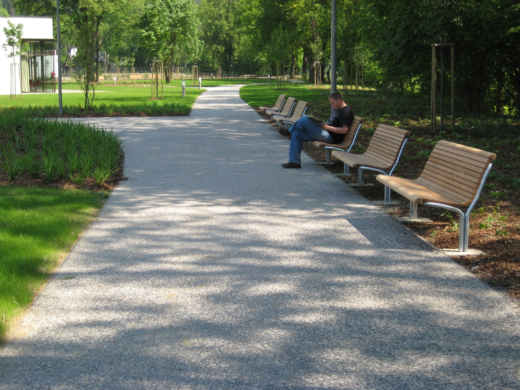 In Anlehnung an einen ehemaligen Werkskanal, durch den das Areal von der Stadt abgetrennt und zu einer Insel wurde, wurde wieder ein Bachlauf basierend auf den wasserbaulichen Vorgaben angelegt. Neben der Einbindung des Gewässers in das Gestaltungskonzept des Parks waren gewässerökologische Kriterien wie die Einbringung unterschiedlicher Sohlsubstrate, variierende Gefällesituationen mit Abtreppungen und flachen Fließstrecken, die Ausbildung von Flachwasserzonen und ein pendelnder Stromstrich entwurfsbestimmend.