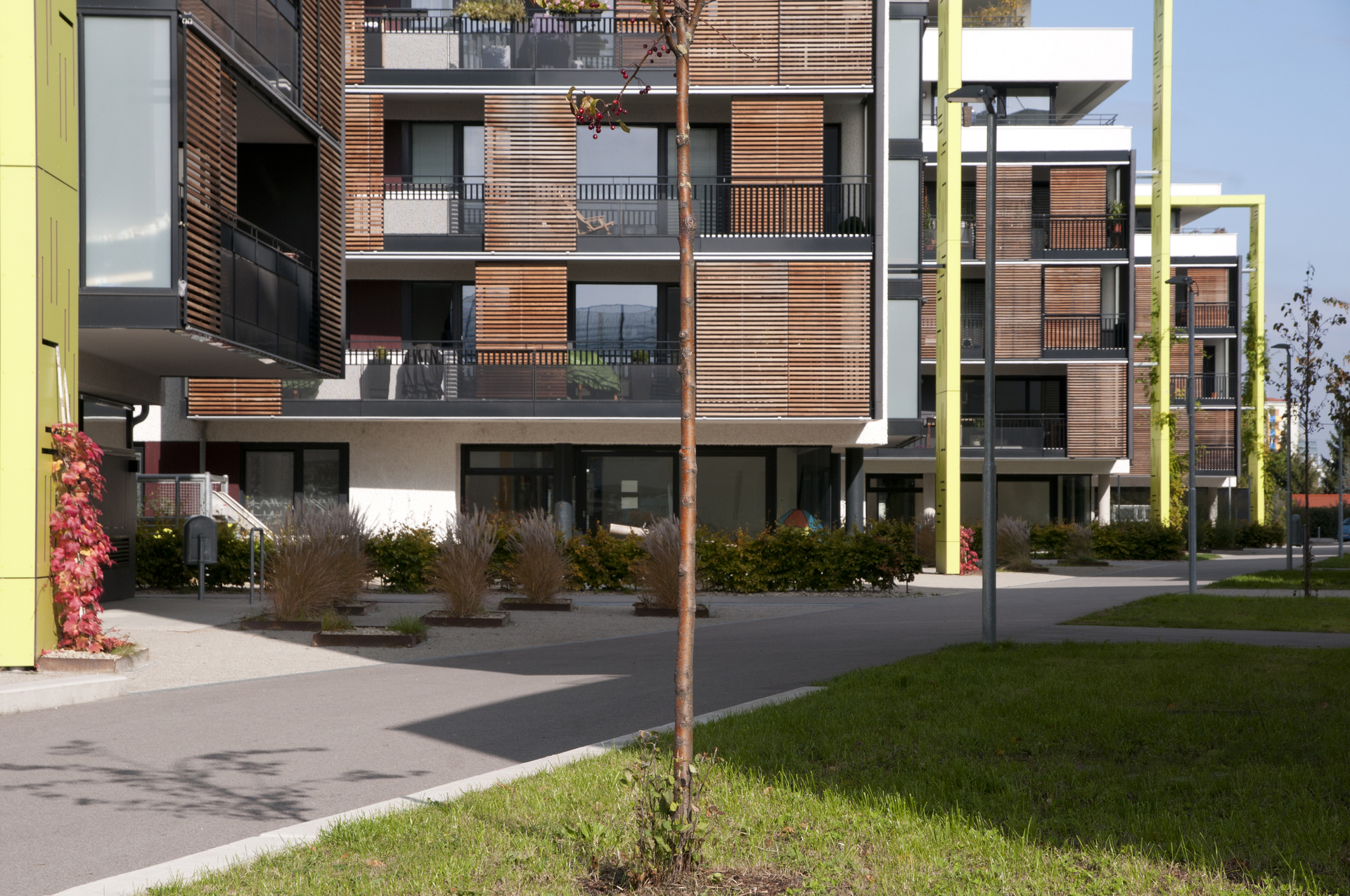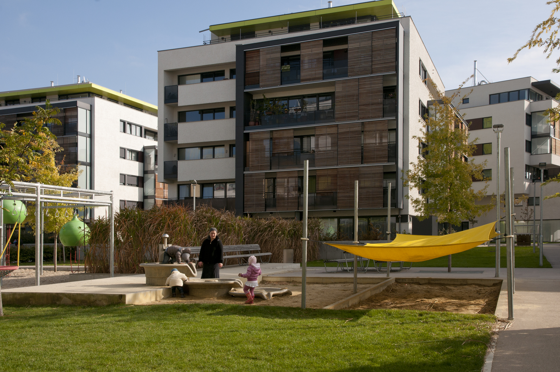 Die Maßstäblichkeit der Baukörper und die differenzierte Gestaltung der Freiräume führen zu einem hohen Identifikationsgrad mit der Anlage. Das Bebauungskonzept bietet Plätze der Begegnung, Schnittstellen, Treffpunkte, aber auch ruhige Zonen der Kontaktaufnahme. Durch das Angebot an kleinteiligen Strukturen lassen sich leichter nachbarschaftliche Beziehungen aufbauen – eine Grundvoraussetzung für das Gelingen des Projektes. (Text: Architekten, redaktionell überarbeitet Martina Frühwirth)