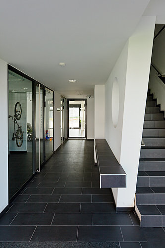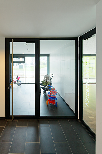 Sämtliche Zugänge und Erschließungsflächen sind allseits einsehbar, natürlich belichtet und übersichtlich. Lichtschlitze führen das Tageslicht in weite Teile der Garage und gemeinsam mit den transparenten Schleusentüren sowie dem Farbleitsystem wird dem Aspekt der Alltagstauglichkeit und Sicherheit Rechnung getragen. Die Allgemeinräume sind an Schnittstellen positioniert, die ständig frequentiert werden müssen, also an Durchgängen oder Stiegenhäusern und so die soziale Kontrolle ermöglichen.