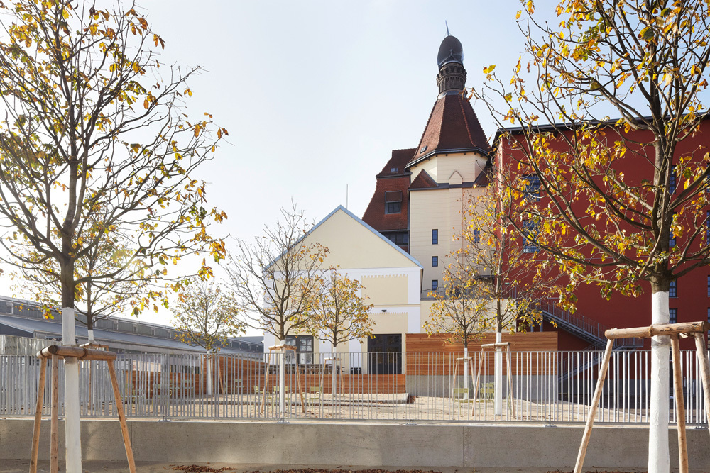 Neu gestaltet wurde außerdem die Zufahrt in die Brauerei über die Grüllemeiergasse, neue Privatparkplätze wurden geschaffen, eine neue Portierloge (Planung Gullotta Architekten, Hamburg) ist zentrales Element der Haupteinfahrt.