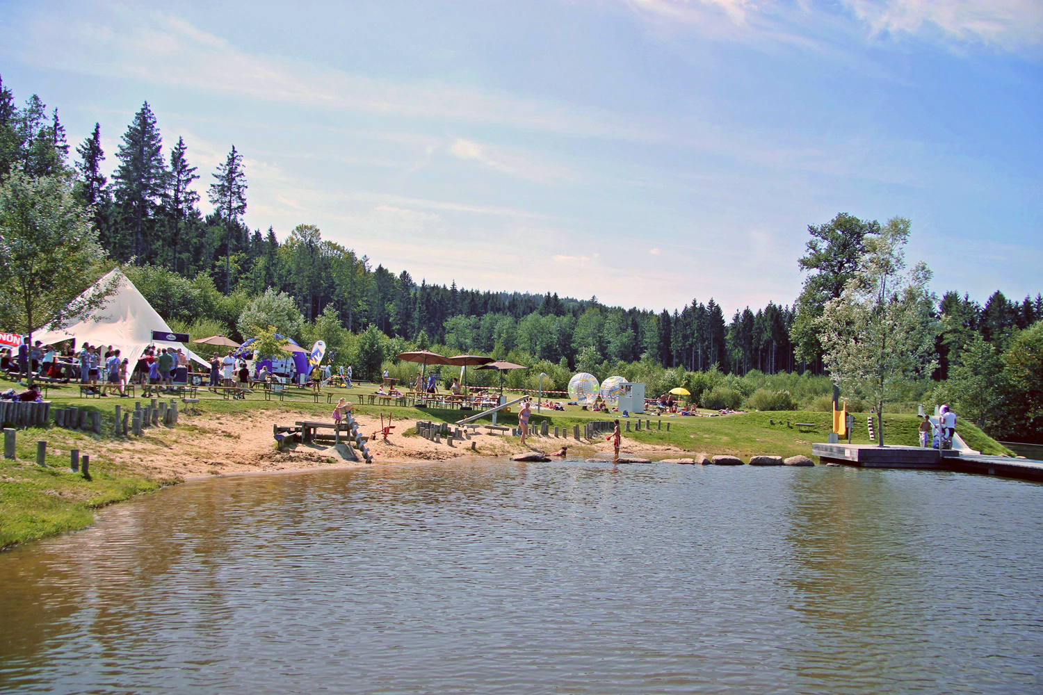 Durch die Modellierung der Uferlinie entstand eine großzügige Bucht mit Sandstrand, an der der Kinderspielbereich liegt. Die große, langgezogene Wiesenfläche wurde durch die Anlage mehrerer Liegebuchten mit Wild- und Blütensträuchern rhythmisch gegliedert. Diese Buchten öffnen sich zur Wasserfläche und zu den Freizeitattraktionen, bieten aber gleichzeitig Wind- und Sonnenschutz.