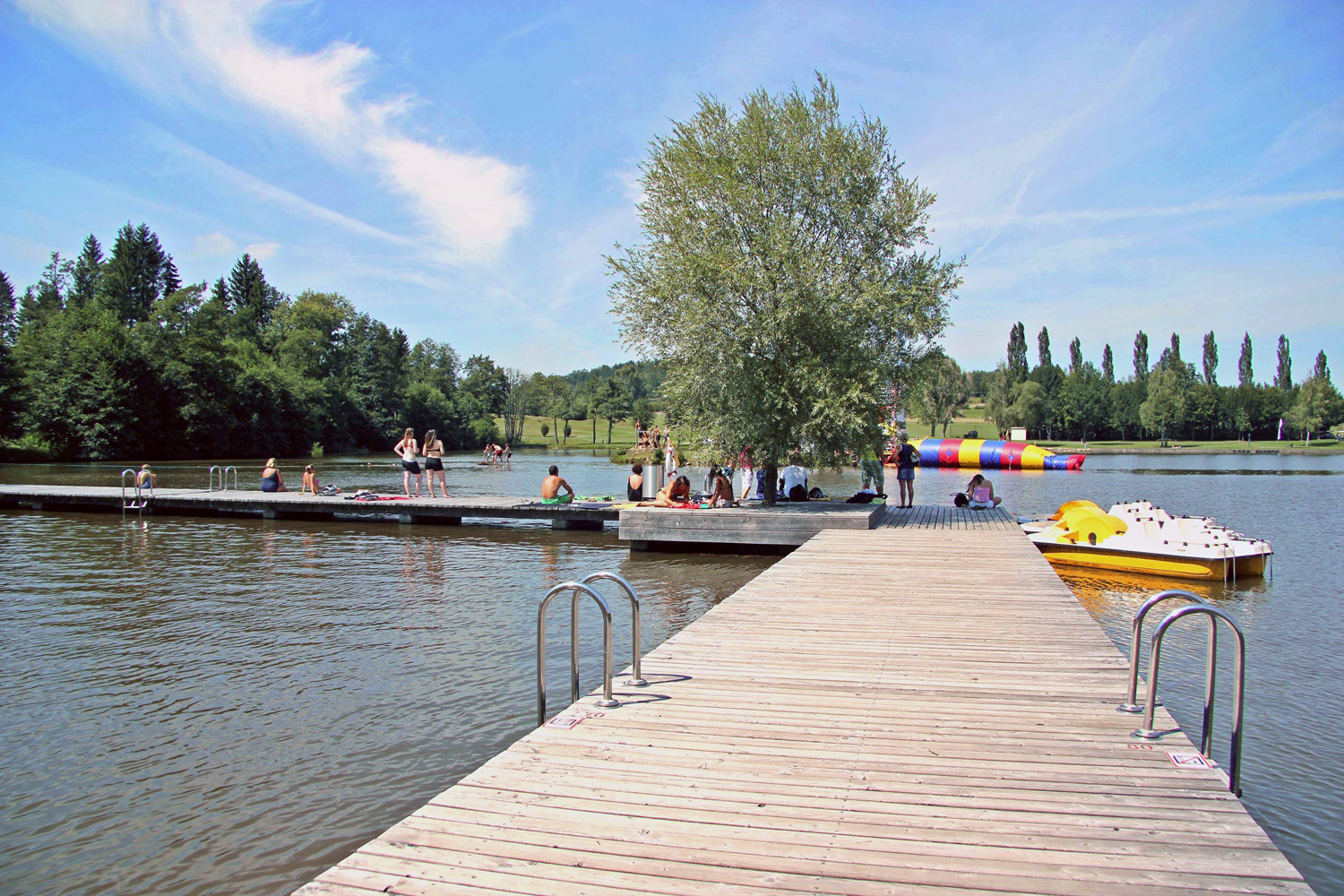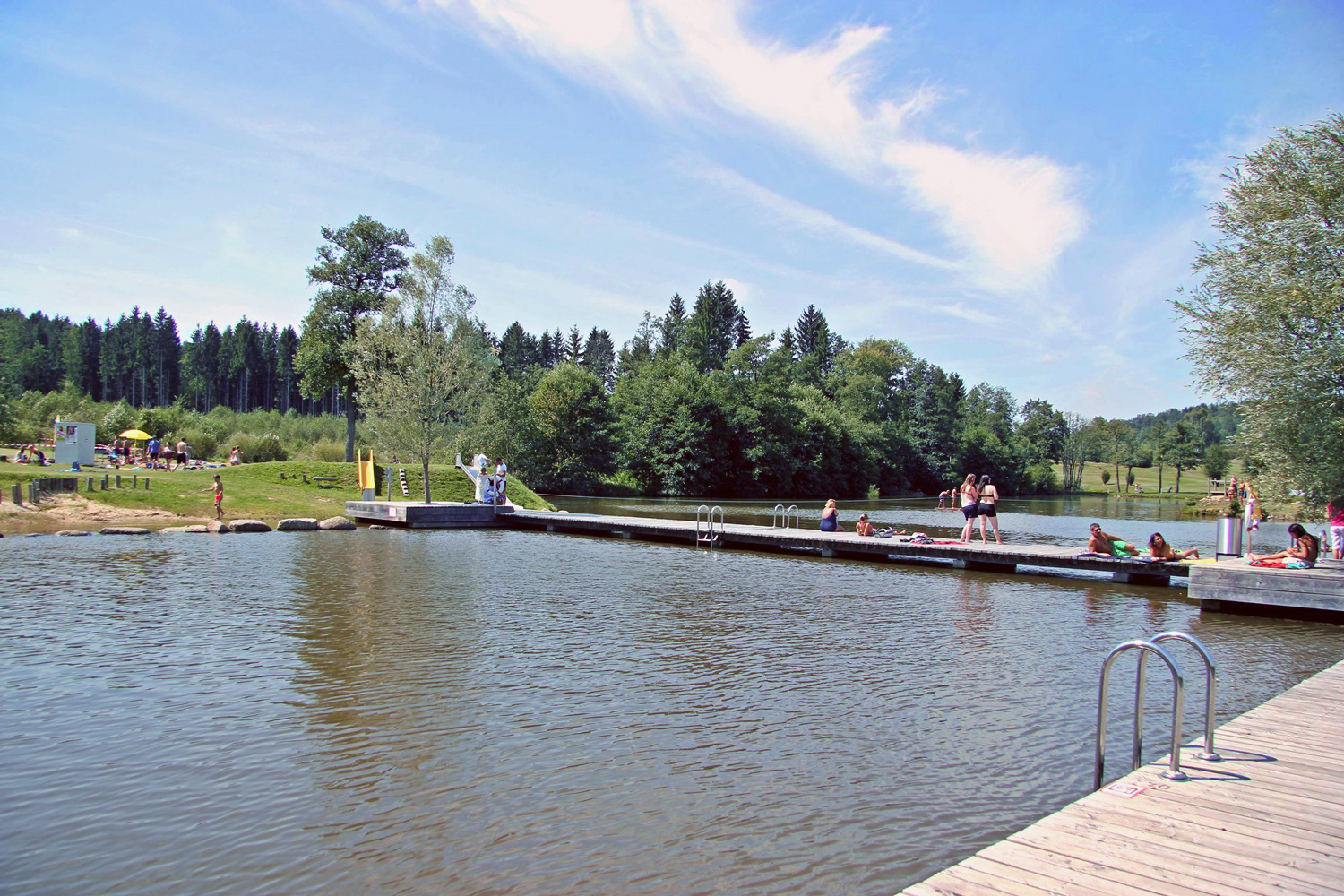 Schwimmbereich baulich trennt. Zusätzlich wurden Plattformen geschaffen, die das Liegen über dem Wasser ermöglichen. Diese sind am Steg erhöht positioniert