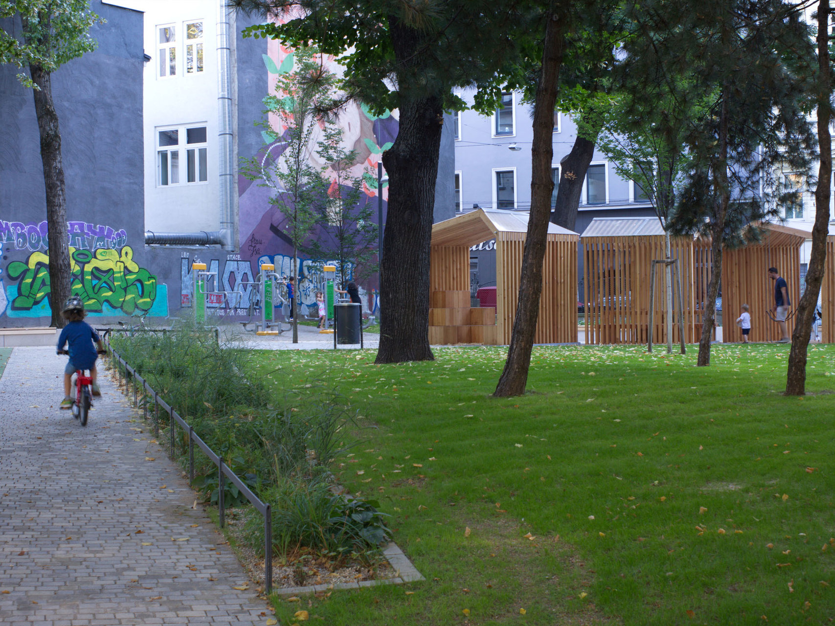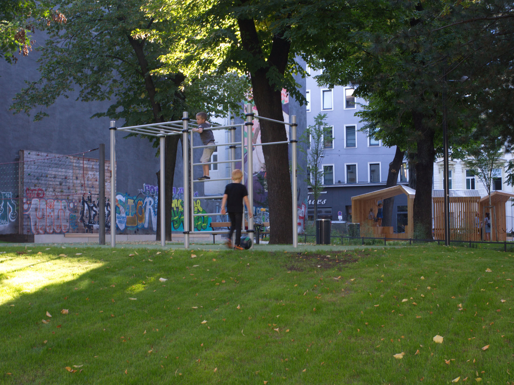 Der von zahlreichen Kindern und Kindergruppen genutzte Park bleibt in seiner Spielausstattung grundsätzlich erhalten und erfährt nur punktuelle Abweichungen. (Text: DnD Landschaftsplanung)