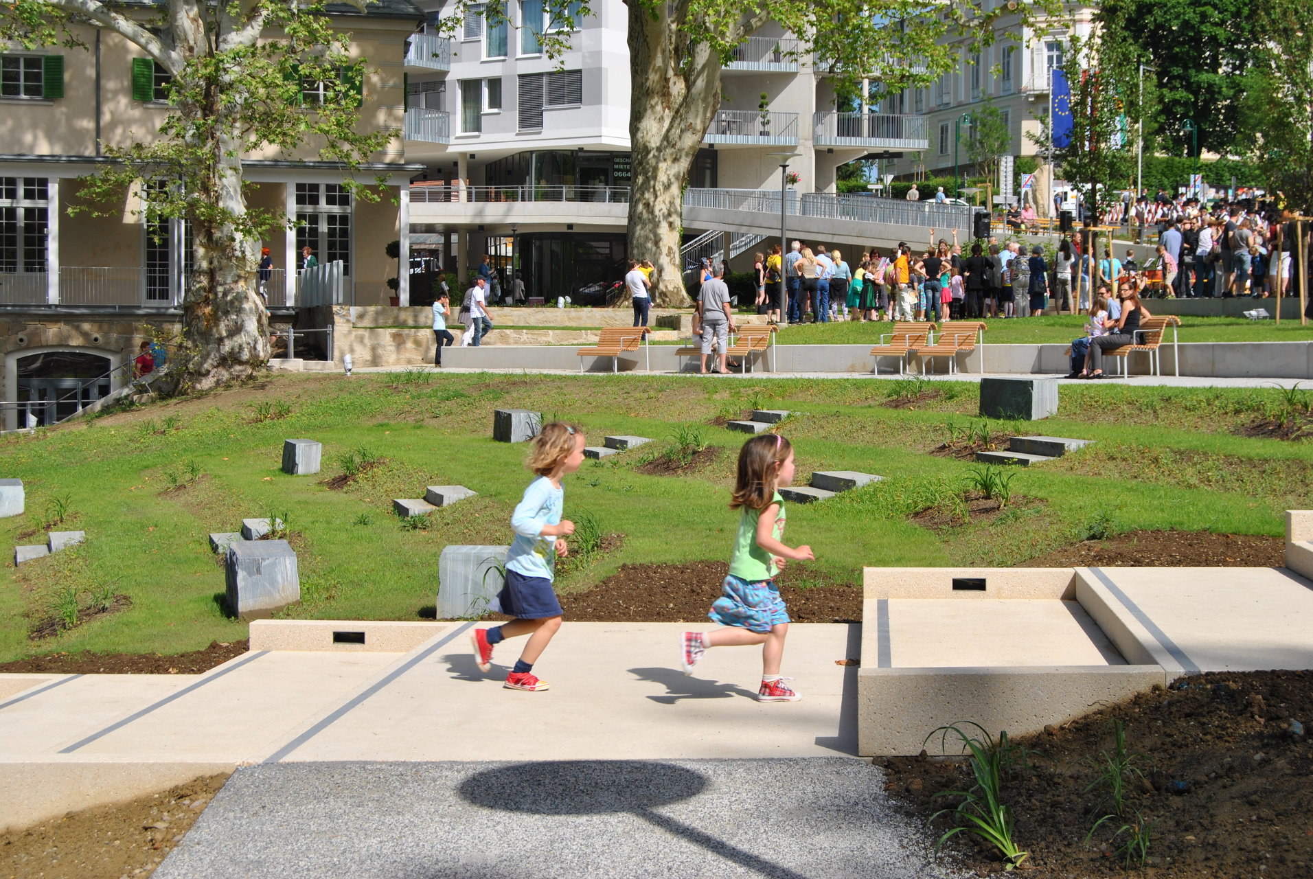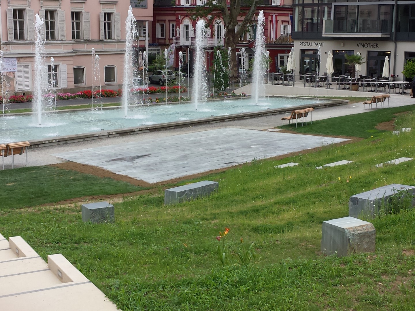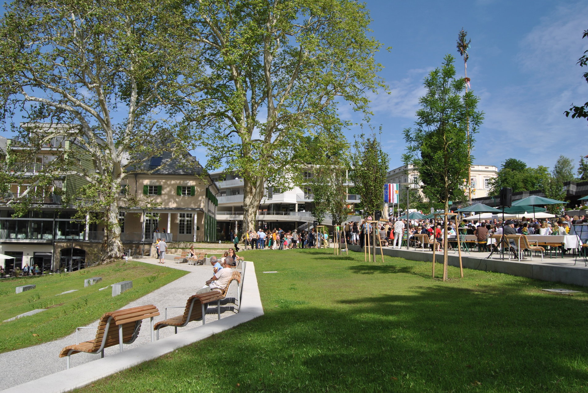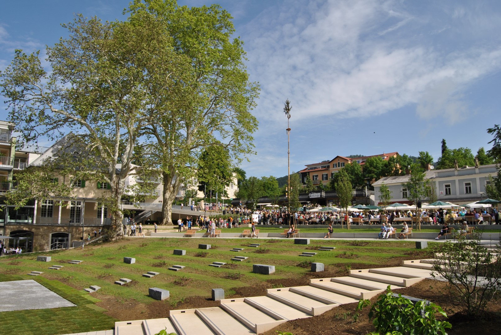 Die Formensprache folgt den heterogenen Sichtbezügen des komplexen Ortes, ergibt sich zum Teil aus den Besonderheiten der Nutzungen und trägt ihrerseits zur Dynamisierung des Freiraums bei. Stadtplatz und Brunnenstraße weisen einen zusammenhängenden Bodenbelag auf. Sie sind über geschnittene Hainbuchenhecken miteinander vernäht. Die Straße wurde als „shared space“ gestaltet. Der Stadtplatz und die Brunnenstraße ist von japanischen Schnurbäumen und Zierkirschen gefasst. Sie bilden einen variabel bespielbaren Rahmen: eine Flanierzone mit einer besonderen Möblierung. Für die Beleuchtung wurde eine zeitgenössische Leuchte ausgewählt, die sich nahtlos in das biedermeierliche Ambiente des Ortes einfügt. Der Platz lässt unterschiedliche Ereignisse und Veranstaltungen zu und kann auch einen Markt aufnehmen. (Text: Auböck + Kárász)