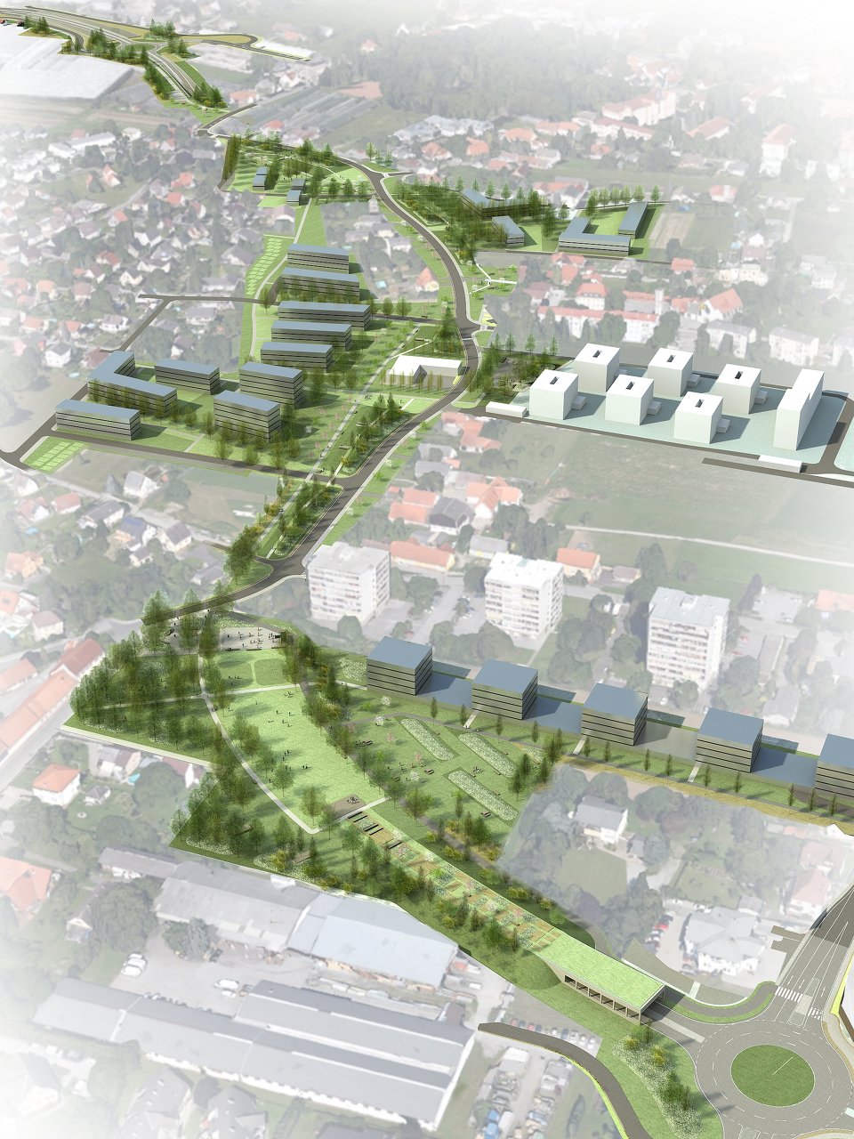 Über die gesamte Länge des „Grünen Bogens“ wurden abgestimmt auf die geplante Nutzung unterschiedliche Wiesentypen mit unterschiedlichen Pflegerhythmen geschaffen. In die Wiesen eingestreute Gehölzflächen, deren Artenauswahl bzw. Dominanz variiert, verändern sich im Laufe der Jahre durch eine eigenständige Entwicklung (Sukzession) und haben in Hinblick auf die Nachverdichtung und Neubesiedlung Potenzial zur Nachgestaltung. Obstgehölze stellen ein verbindendes, wiederkehrendes Element entlang des Grüngürtels dar.