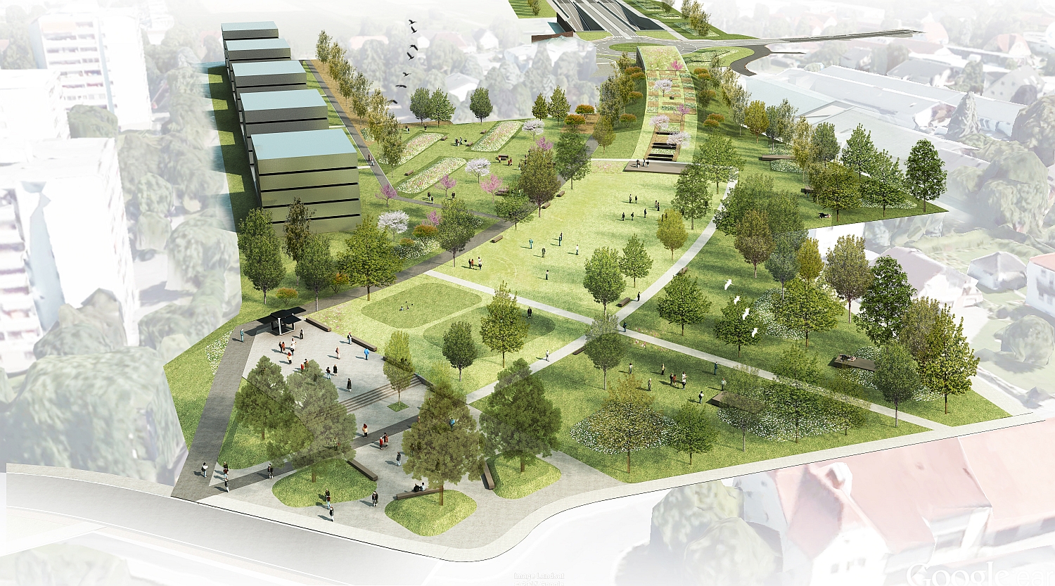 Fußwege verbinden den östlichen mit dem westlichen Stadtraum.