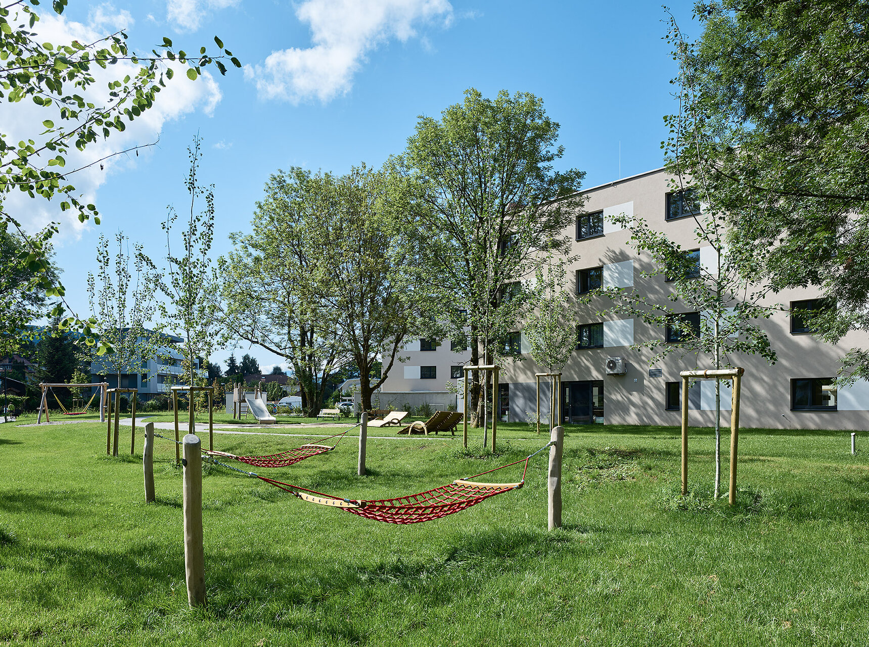Die ostseitige Grünfläche ist komplett als Spiel- und Freibereich ausgestaltet. (Text: Landschaftsarchitekten)