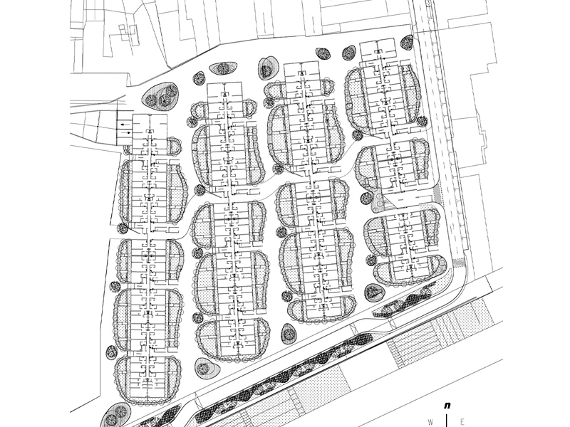 The scheduled time for preparing plans and for resolving the building work was very tight: 650 apartments in less than eighteen months, which meant more than one apartment a day. The budget was also extremely limited: the aim was to build low-cost apartments and we had to bring the final production cost in at around 500 €/m2.