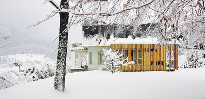 The house is situated in the open space of the Fužine plain - in the heart of nature and embraced by the Julian Alps, on the edge of the Stara Fužina village, on the edge of the Triglav National Park, where the view is the point of contact for the interior design of the house: spaces become halls with screens, showing the entire area from Rodica and Vogel to Komna, and from Vogar and Triglav, across the lake, to all the meadows and woods.