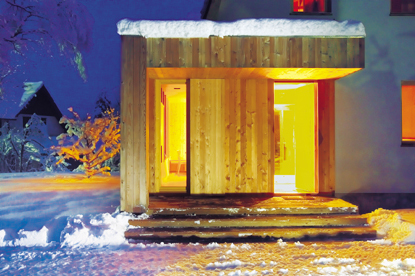 Those principles serve as the basis for our „wooden ground floor“ concept. On the outside, the concept seems like an addition to the already existent edifice, while the interior is merged into a fluid, homogenously designed space. Through nostalgia over local architectural highlights such as „kozolec“ (a type of hayrack) and shepherds’ cottages, we are trying to found a new façade concept. We modify the traditional motif into a pattern of „local lace“ that, through its transparency, enables maximum contact between the exterior and the interior. This way we develop a unique entity within the local tones and use it as the leading element of our interior design. The wooden intervention becomes a link in the common story.