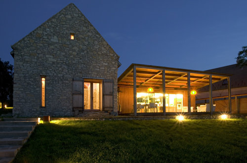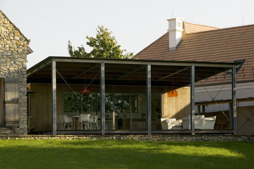 Next to the existing reconstructed house a perpendicular extension was built on the area where ome old sheds used to stand. This extension houses the sun-room/kitchen and was designed to meet modern day standards using the most contemporary technologies, materials and construction methods. The new does not want to transform the old and did not come into existence to replace it, but rather to complete it.