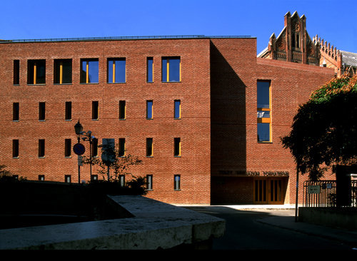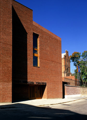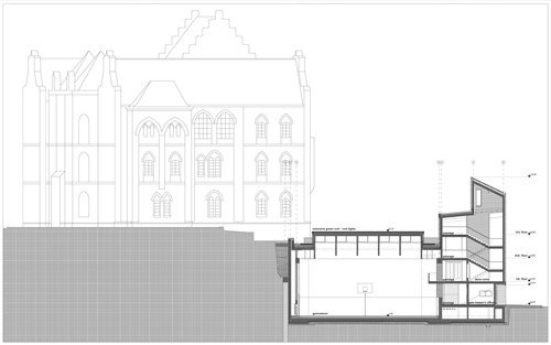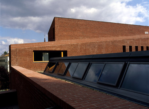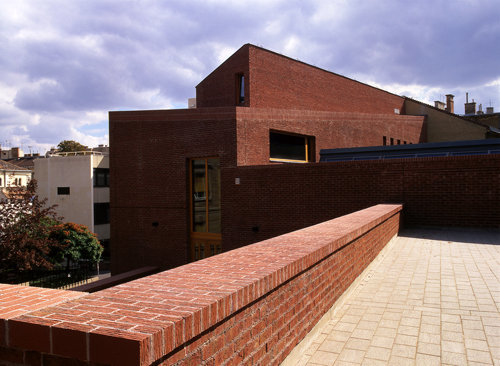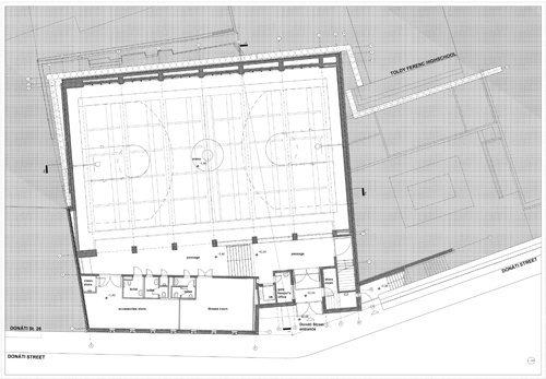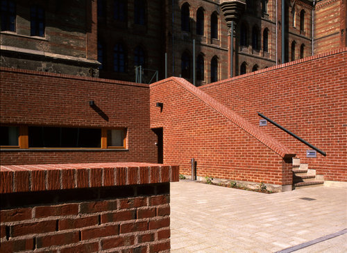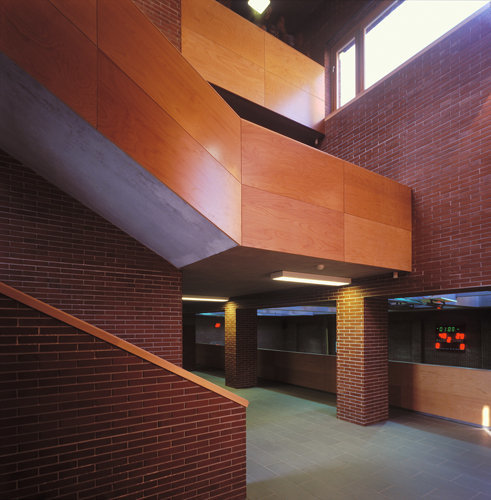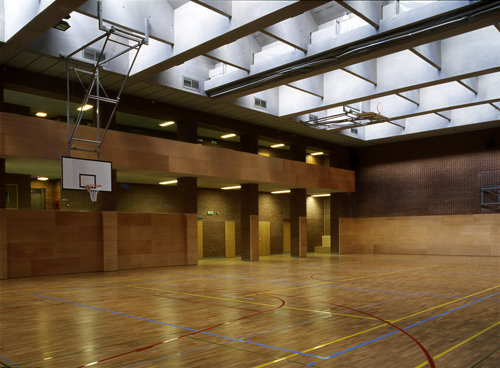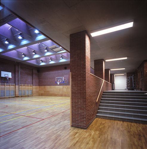 The external walls of the building are clad with handmade Röben brick. Brick surfaces also dominate the interior, as in the main building. The ceilings are exposed concrete, the roof tiles are anthracite colored. The doors and windows are made of natural, uncolored wood. The sprung sports floor - specially ordered from Sweden - provides maximum elasticity to prevent injuries. (architects' text)