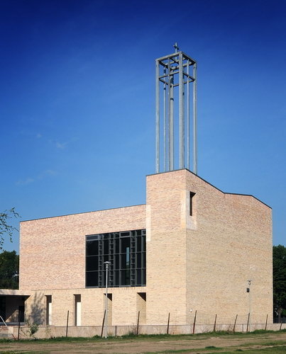 The church reverts to the traditional layout and materials of the roman basilica, like stone, timber and brick, with simple, contemporary form and detailing. (architects' text)