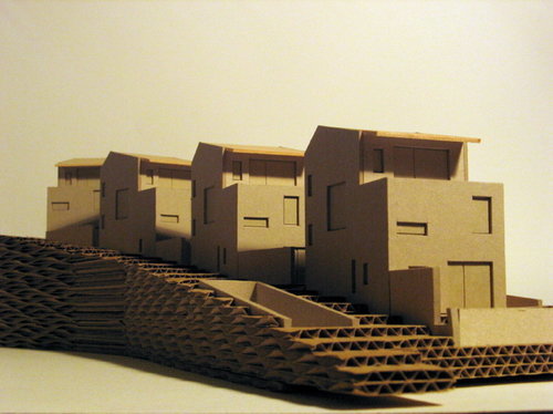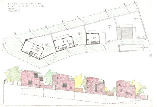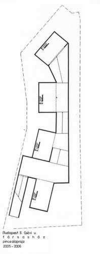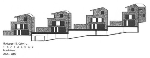 Brief, elegant and substantive solutions are used both in its materials and its forms on the row of apartment houses on the Csévi street. The little differences on the certain houses please the eye, after the successful siting the forming of the individual houses became free – between certain borders. But the architect, Tomay knows these borders quite well. Sarolta Entz