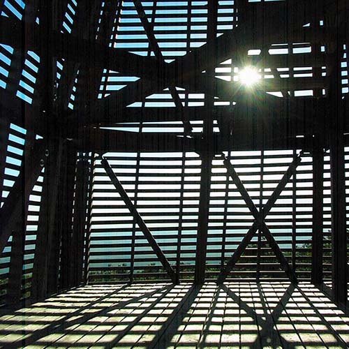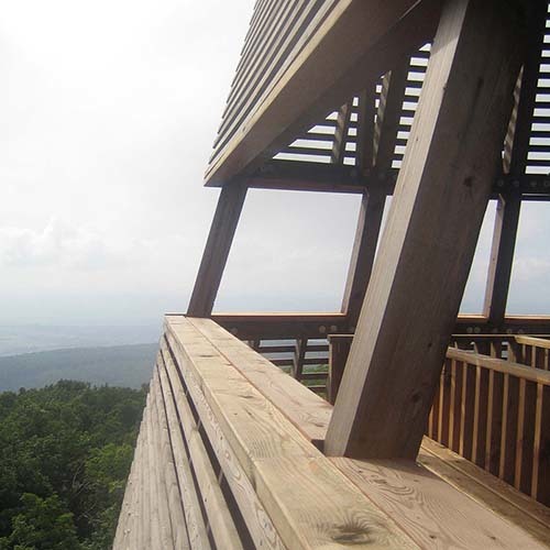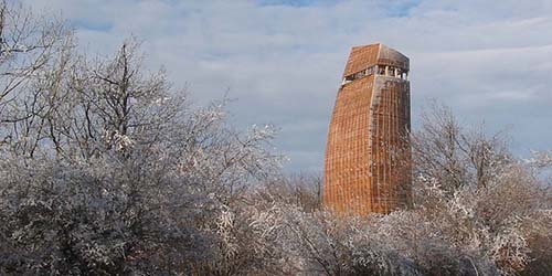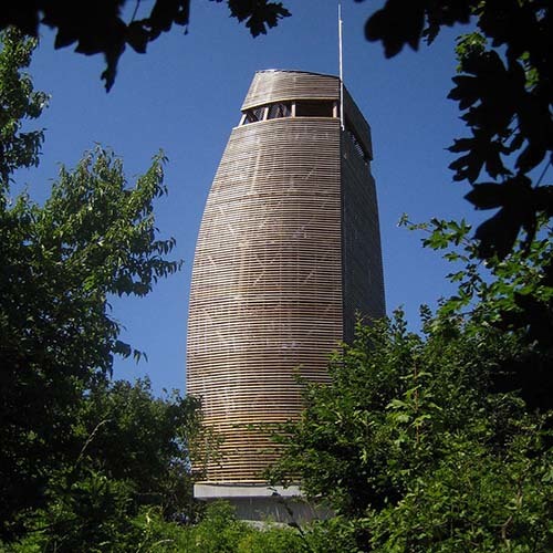 The ground level of the tower is made of reinforced concrete and serves as an entrance and a shelter for hikers too. If you go up on the stairs of the gazebo, on the intermediate levels it offers mysterious spaces, full of light and secrets. Here you just get some pieces of the view between the covering slats of the tower – but you feel that there must be something up there, so it worth to climb until the top of this strange building. Meanwhile this climbing you can find banks on every level, where you can have a rest, you can think, and enjoy the silence of nature. Reaching the highest level of the tower you have a wonderful panorama all round, as a reward for your persistence.