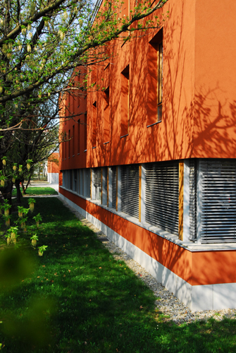 The original size of the gym was not according to the modern needs, thus a new gymnasium (with the dimensions of 12 m x 24 m x 8 m) was inevitable. The gym was accompanied with stands for 30 persons. (architects' text)