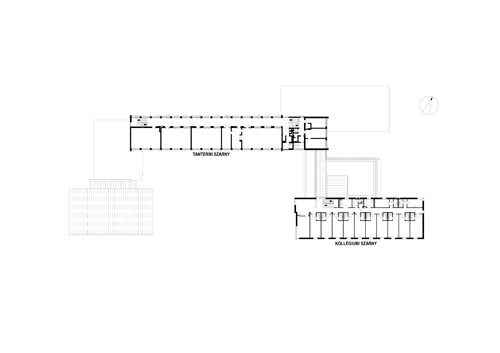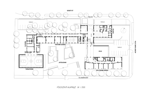 The new arrangement of the kitchen (with maximum capacity of 300 portions) and the restaurant (for 80 people) creates the visual conntact between the lobby and the restaurant. It was achieved through the termination of the janitor’s appartment to make the community areas of the school reachable from the lobby.
