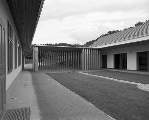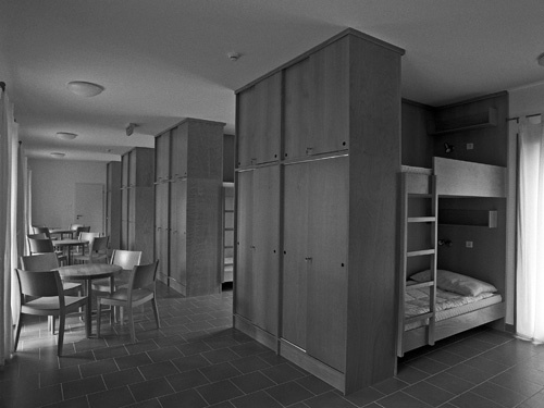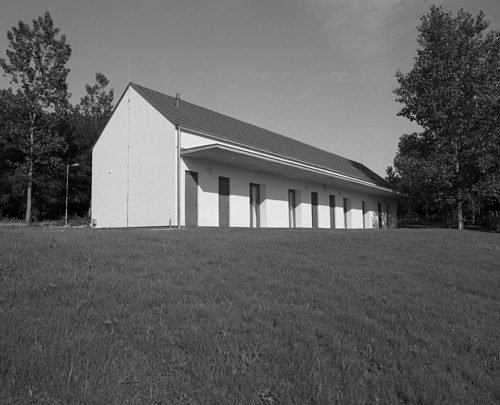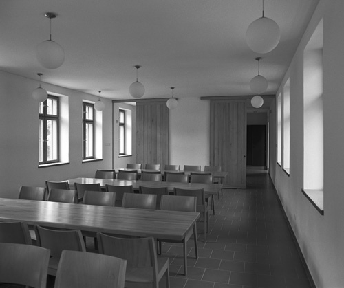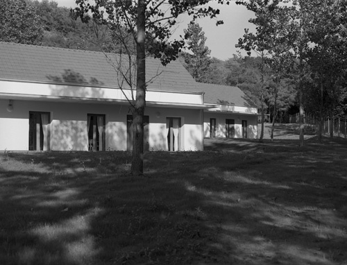 The different units of the Pilgrim House are located separately, using the makings of the location. The buliding of the steam laundry was pulled down due to its poor condition. The common rooms (dining hall, lecture hall and service rooms) are located in the refurbished housing unit and a new building. The dwellings were placed on the grovy slopes of the southern part of the site. Three of the four houses are for youth groups, each containing a room for 16 and a room for 2 persons, both with their own bathroom. The fourth house, that is for families, has three units: two for 6 persons and a hermit dwelling for one, all having an en-suite bathroom and a small kitchen. The room for one offers a quiet place for resting and preparation of the lecturers and leaders of retreats held here. In case of public events or for those camping next to the houses there is a washroom in every building that can be used from the outside. The dwellings can shelter 67 people at the same time. (architects' text)