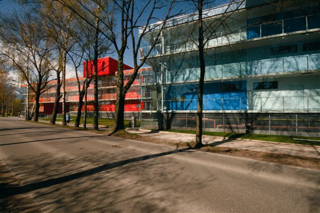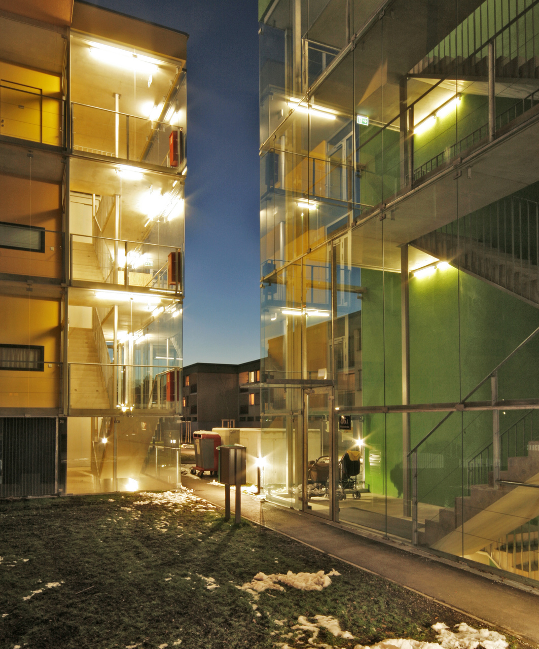 - Mischbau, Stahl-Glaskonstruktion, Stahlbeton, Vermeidung von PVC im Innenausbau