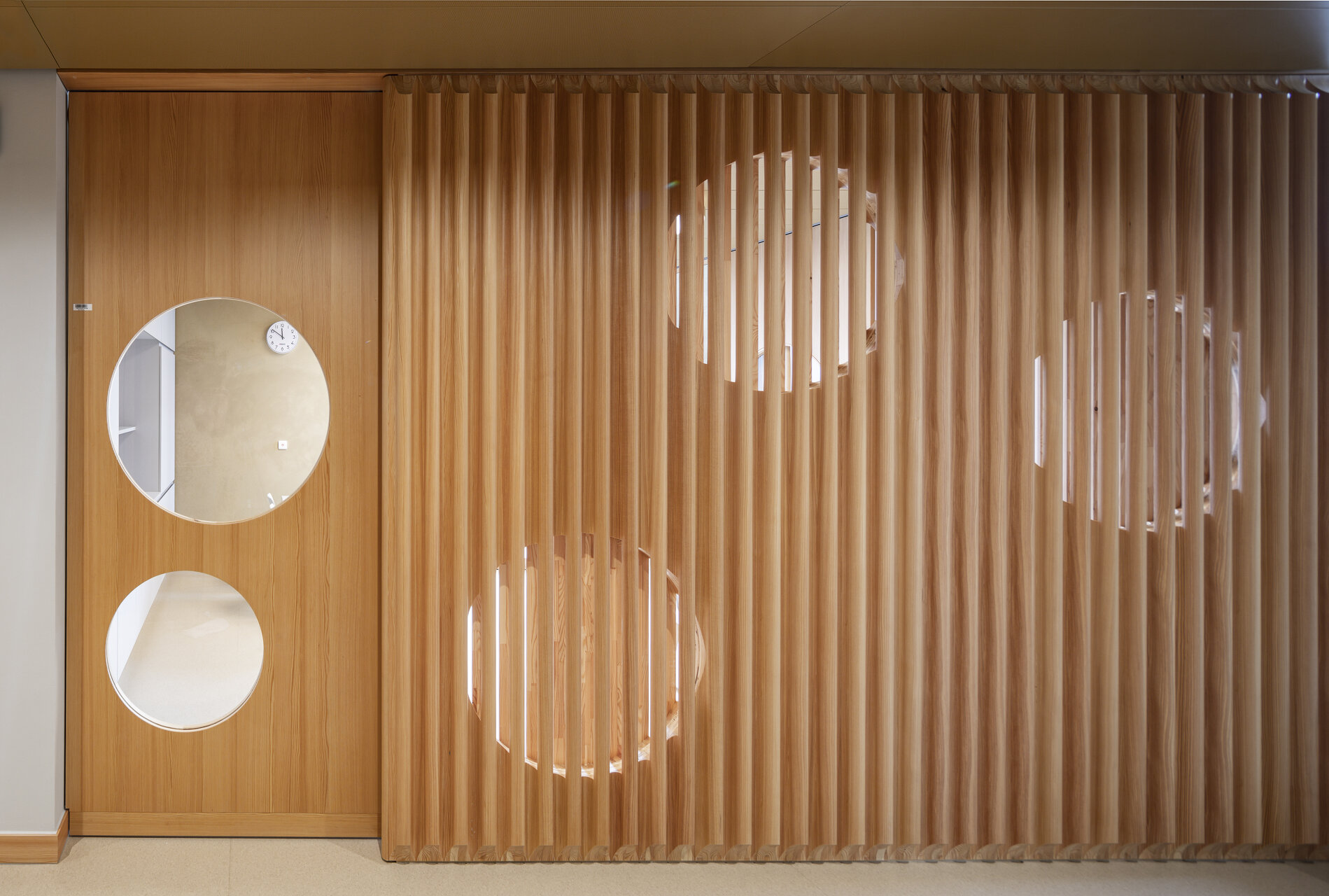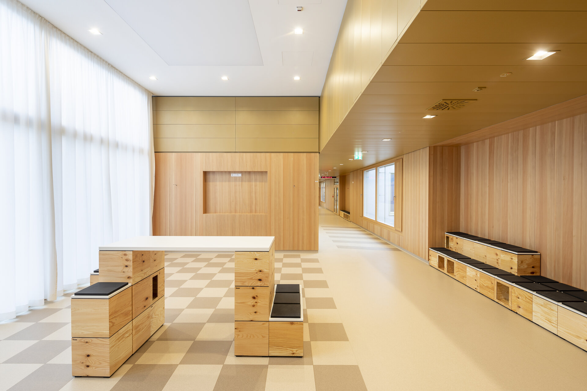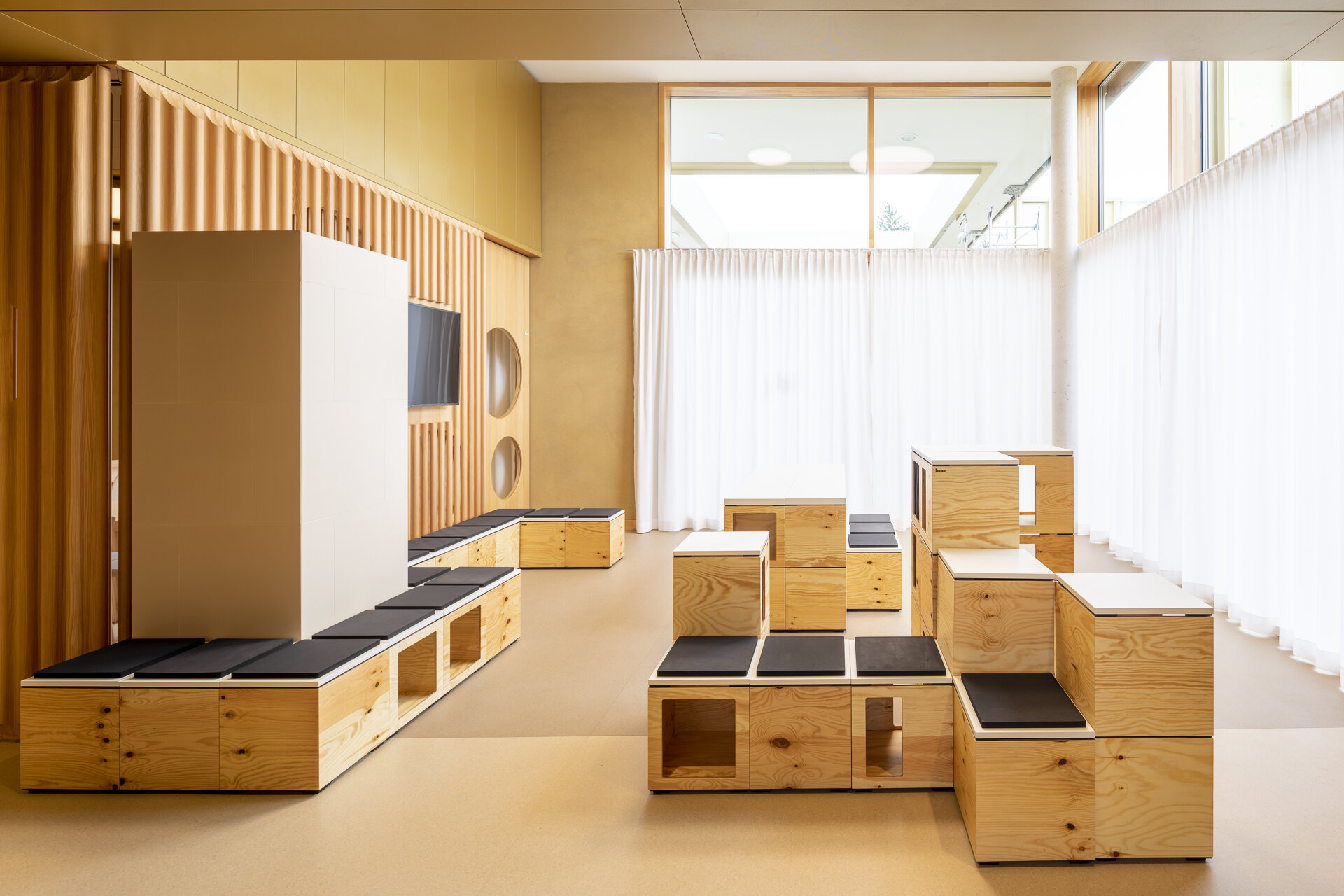 Im Zusammenspiel mit den natürlichen Materialien, wie Lärchenholz und Lehmputzen, sowie den individuell gestalteten Möbeln entstand ein Healing Building, das den Kindern und Jugendlichen ein Gefühl von „Zuhause“ und jenen Rückhalt bieten soll, den sie für ihre Genesung brauchen. (Text: Roman Höllbacher, nach einem Text der Architekten)