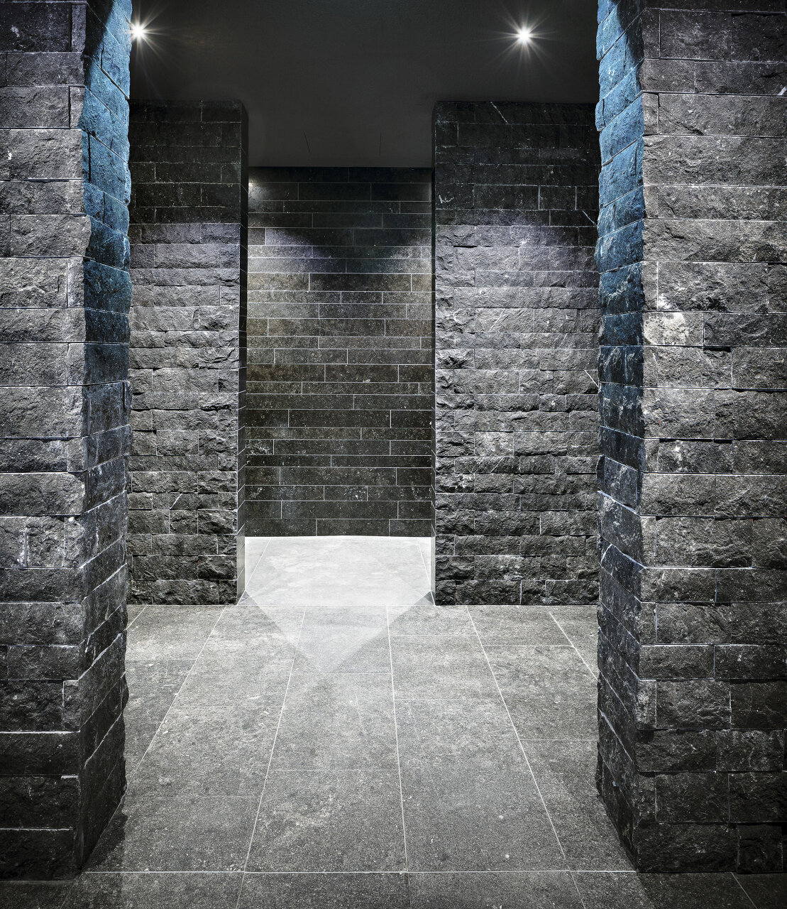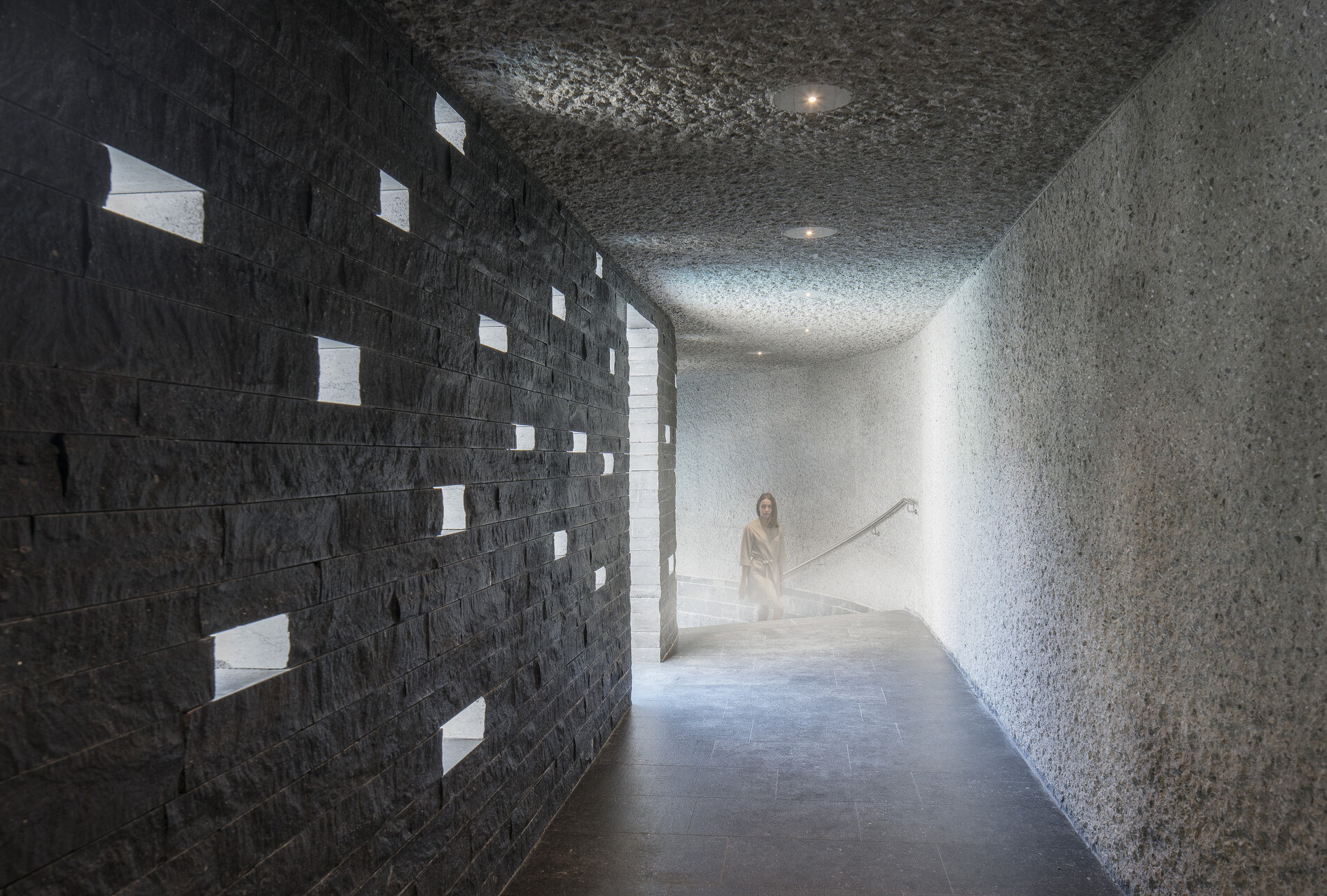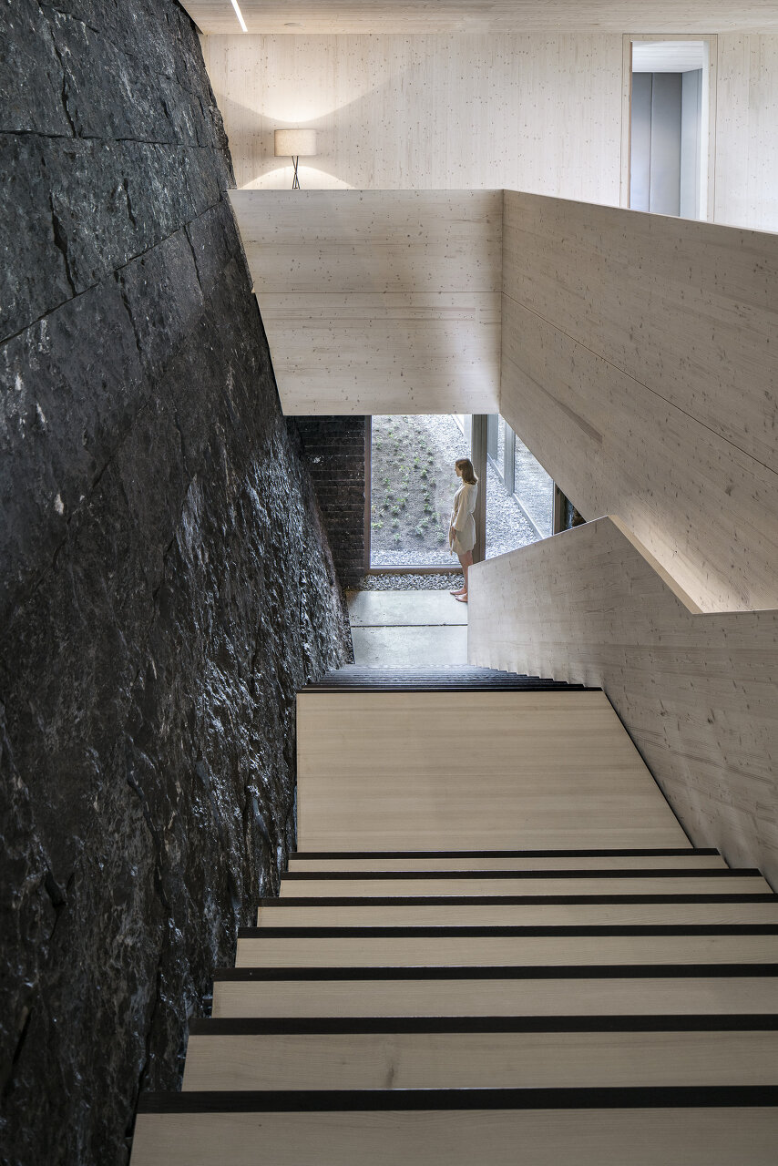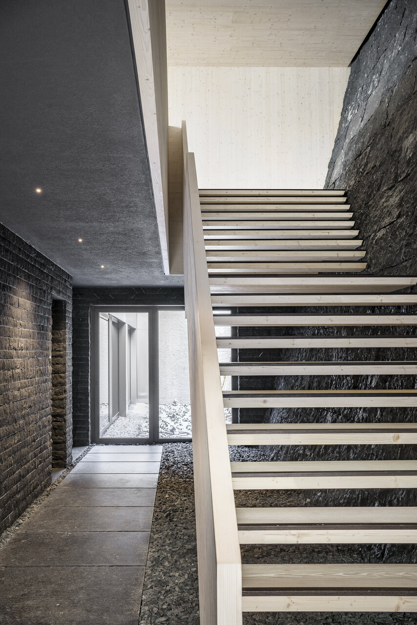 Die Materialität - Stein und Beton im Nassbereich und Holz im Ruhebereich - erzeugt durch differenzierte Oberflächenstrukturen und einer entsprechenden handwerklichen Verarbeitung eine Ästhetik, die durch eine unaufdringliche Atmosphäre und einen unverwechselbaren Charakter besticht. Die Reduktion auf das Notwendige und das Besinnen auf das Wesentliche geben dem Gast Raum für sich selbst und bieten eine Alternative zum gebauten Alltag der Tourismusarchitektur. (Text: Initiative Architektur nach einem Text der Architekten)