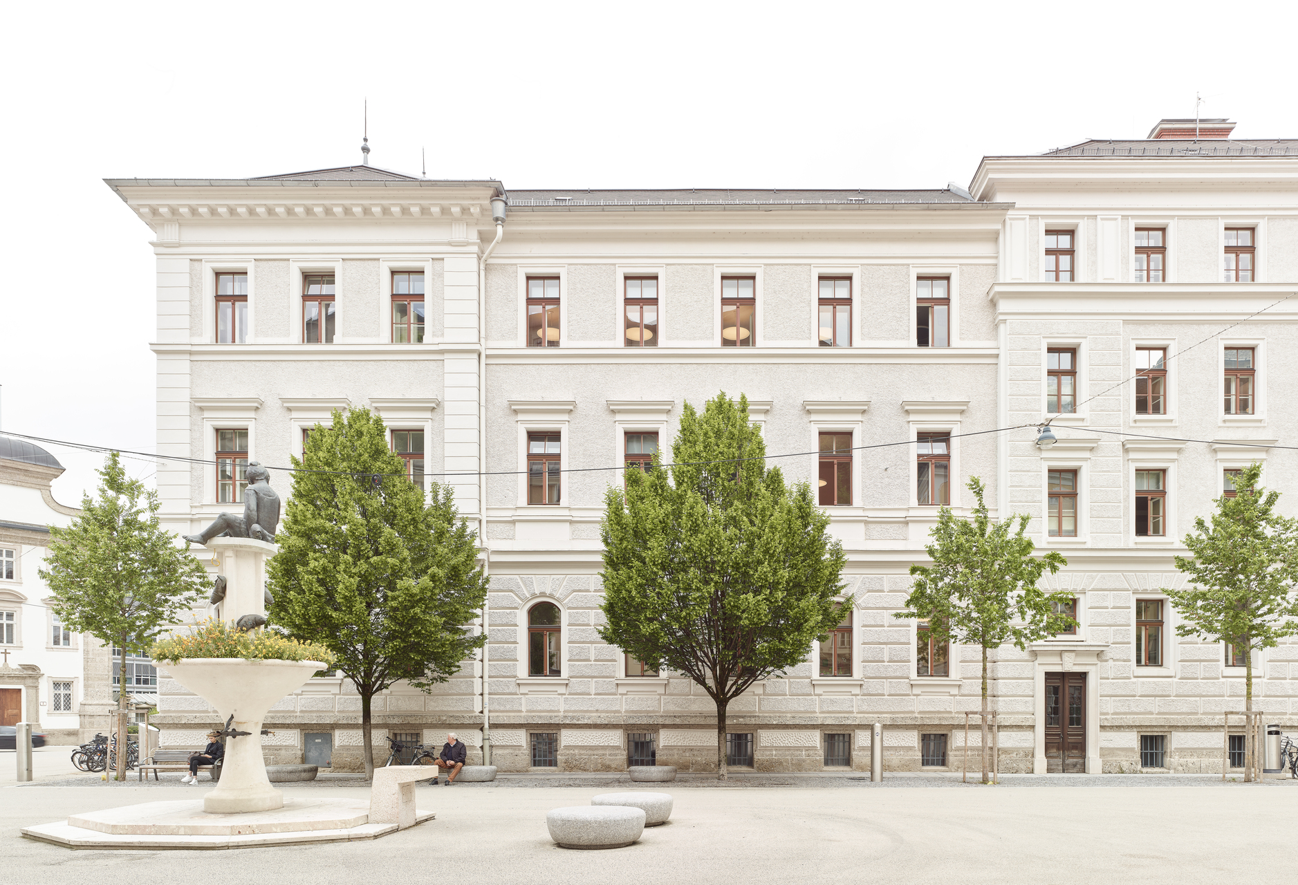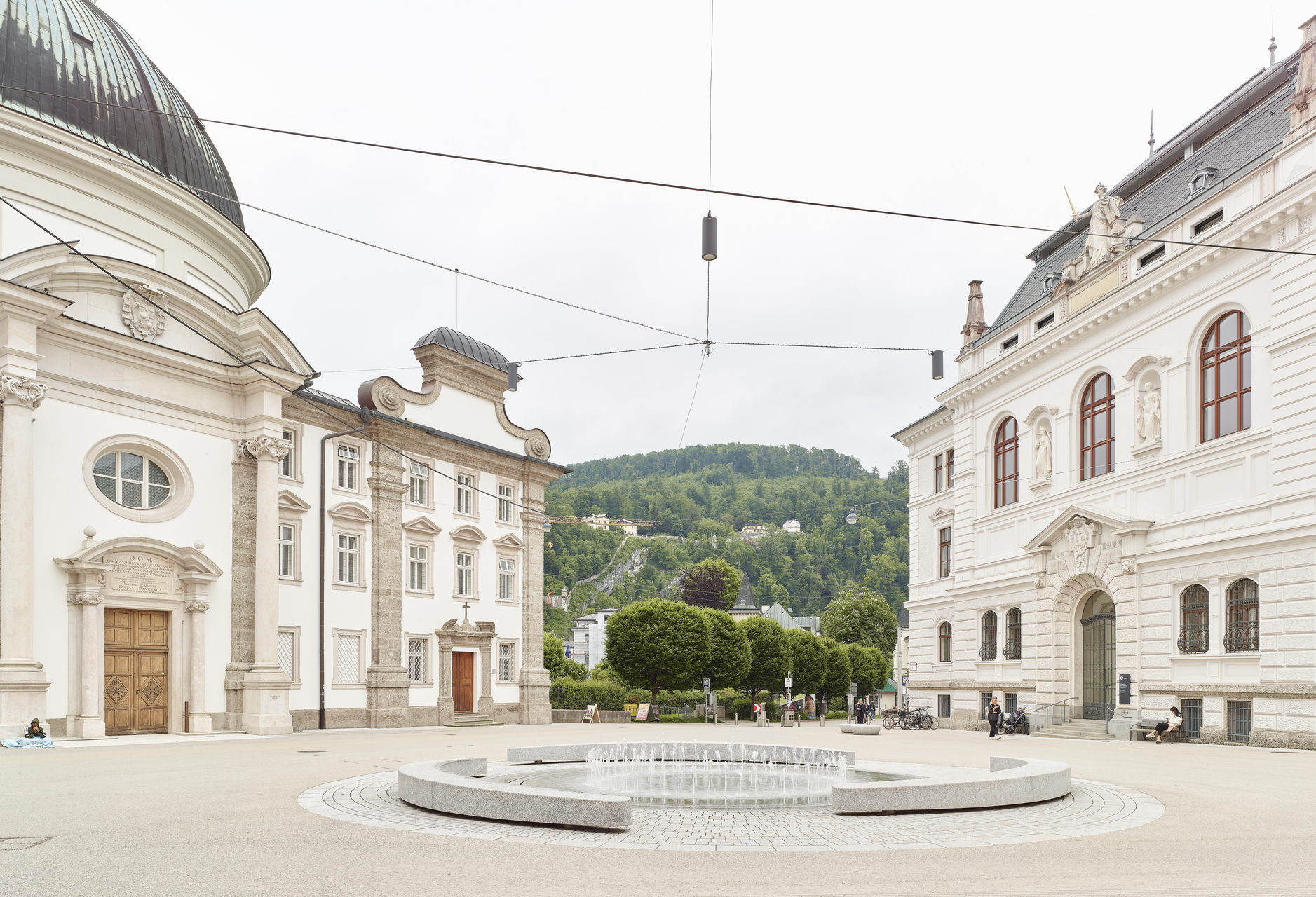 Der ganze Platz ist als Bodendenkmal geschützt. Im Zuge der Umsetzung fanden sich bereits knapp unter der abgetragenen Asphaltschicht eine ganze Reihe von historischen Zeugnissen vor allem der als Gefängnis genutzten Fronfeste. Aus diesem Grund konnte auch nur eine bereits vorhandene Baumreihe vor dem Gericht durch Schnurbäume vervollständigt werden. Eine in Richtung Rudolfsplatz geplante visuelle Raumbegrenzung durch zusätzliche Baumpflanzungen – dort stand bis in die Mitte des 19. Jahrhunderts das Kajetanertor – konnte wegen vorhandener und anscheinend nicht mit vertretbarem Aufwand verlegbarer Infrastrukturleitungen nicht umgesetzt werden. (Text: Roman Höllbacher, nach einem Text von 3:0 Landschaftsarchitektur und udo heinrich architekten)