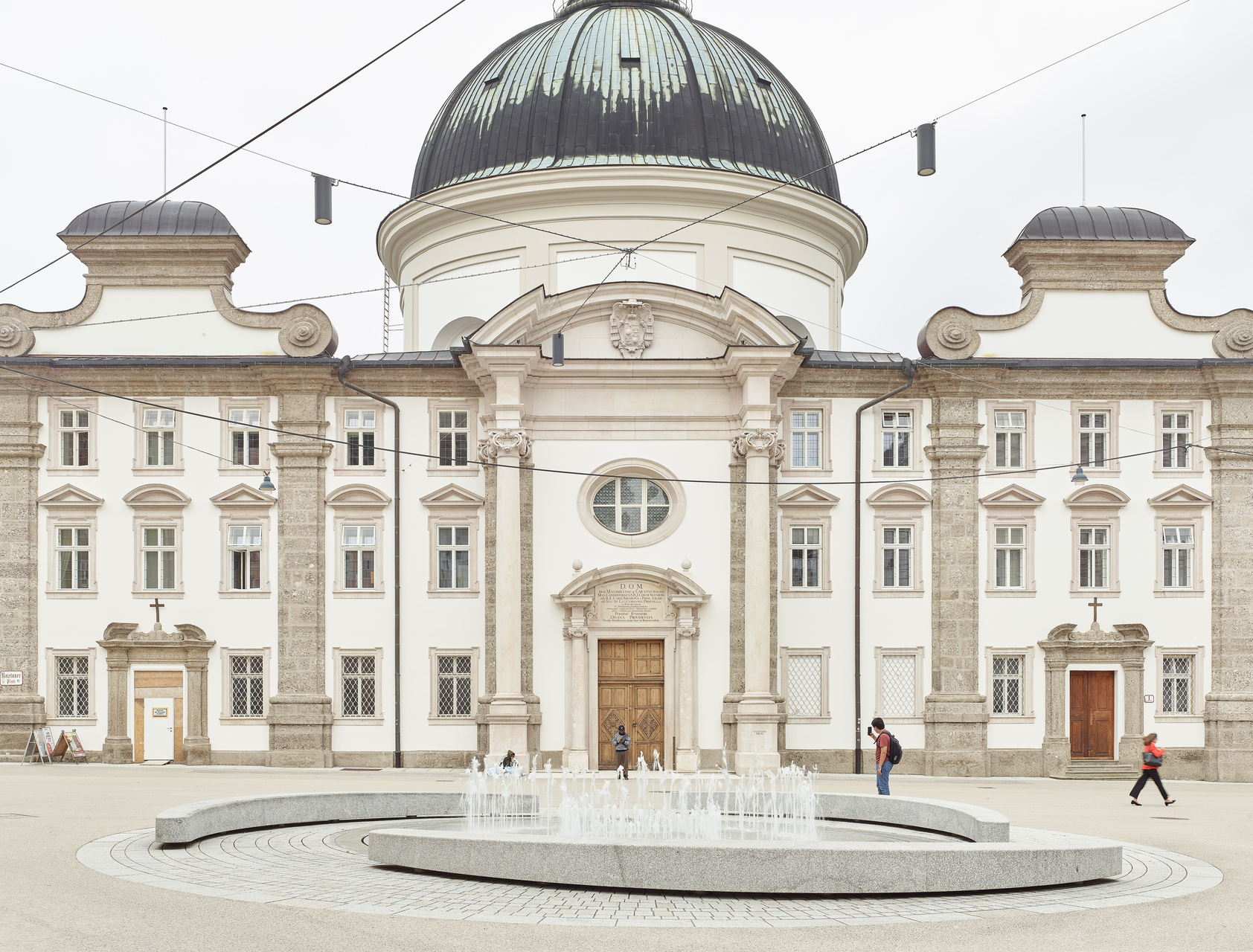 Der ursprüngliche Kajetanerplatz – zwischen Kajetanerkirche, Kajetanertor, Fronfeste und den Bürgerhäusern entlang des Festungsberges – wird durch einen zentralen, bodenbündigen Brunnen mit umgebenden sichelförmigen Granitbänken betont. Er stellt im städtebaulichen Umfeld ein visuelles Gelenk dar und schafft neue Aufenthaltsqualitäten. Rundgeschliffene Sitzpoller aus Granit definieren neben den Sitzbänken des Brunnens konsumfreie Aufenthaltsbereiche. Die Gastgärten vor den Bürgerhäusern werden im Sommer von einheitlich gestaltet Schirmen beschattet.