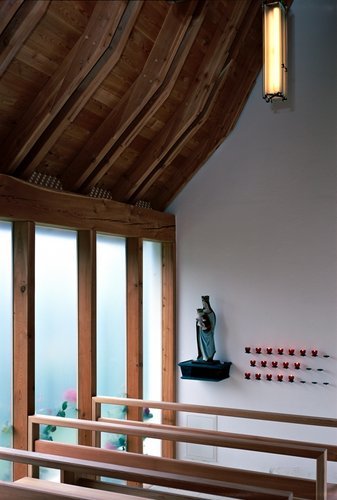 Die Kapelle der Hl. Anna ist ein kleines, zurückhaltendes, aufrichtiges erstes Projekt einer jungen Architektin. Ihre Lage am Rande des schönen und noch immer archaischen Lesachtales ist für das Konzeptverständnis sehr wichtig. Die Landstraße entlang durch die Wiesen, am Bauernhof vorbei, am schmalen Weg den Hang hinauf nähert man sich dem kleinen Gebäude so, dass man es umkreist, wobei sich zunächst die Raumeindrücke vertikal in einem sehr humanen Maßstab entwickeln, schließlich in einen weiten horizontalen Ausblick münden und erneut in der Landschaft, im Rückblick über den gegangenen Weg enden.Die Kapelle ist eine diskrete Symbiose von Tradition und Moderne. Traditionelle Formen manifestieren sich im Dach und im raumbildenden Mauerwerk, jedoch so, dass alle Elemente ein wenig anders als traditionell wirken. Das Dach folgt den unregelmäßigen Linien der Mauer. Die Mauer ist geknickt, geschichtet und öffnet sich, um das südliche Licht hereinzulassen. Ihre Bewegung spiegelt die innenräumlichen Funktionsbereiche und macht diese auch außen, im leicht »bewegten« Baukörper spürbar. Die Gestaltung des Eingangsbereiches ist vor allem außen sehr gelungen, wobei das Rosenmotiv die Schichtenwirkung noch verstärkt. Eine feine Modulation der Mauerstärke formt ein Element, das sich aus der Fläche heraus in eine Linie entwickelt, die den Eingang fasst und umkreist, den Sitzbereich formt und in den Blumentrog vor dem großen Süd-Fenster übergeht. Dieses Element, diese Bewegung wirkt sich auch im Innenraum aus und fasst den kleinen, intimen Eingangsbereich, wo man durch den Lichteinfall und die optisch/haptische Wärme der Holzdetails umfangen wird.