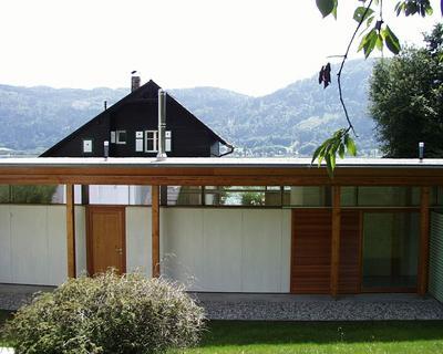 Der Entwurf sieht nicht eine Vergrößerung dieses Häuschens vor, sondern eine Neuinterpretation des Themas „Wohnen am Ossiachersee“ und steht in Verbindung mit dem Bestand. Der Neubau und der Bestand ergeben eine Architekturgesamtheit, die vom romantischen „Alten“ und dem zweckmäßig „Modernen“ geprägt wird.