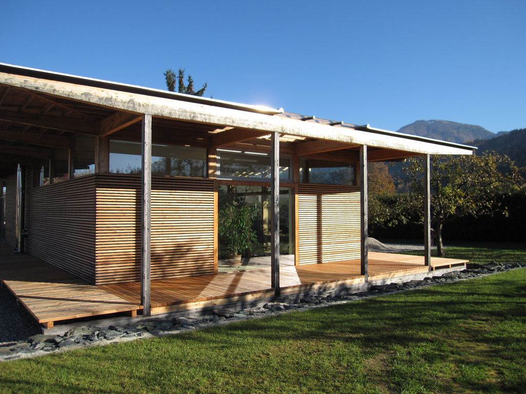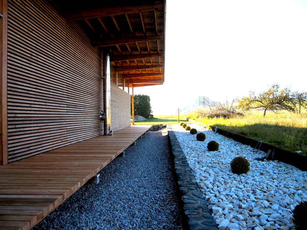 Durch den Dachüberstand ist auch der konstruktive Holzschutz und die Erhaltung der farblichen Holzfarbe und Struktur gewährleistet.