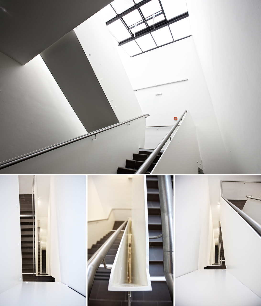 Beide Hauptkörper zeichnen sich dadurch aus, dass die untersten Geschosse durch einen Lichtgraben natürlich belichtet werden. Durch die Abschrägung der Stirnseiten wird auf die unmittelbar anschließende durchwegs einfamilienhausartige Wohnbebauung Rücksicht genommen. Vervollständigt werden die baulichen Maßnahmen durch die Generalsanierung