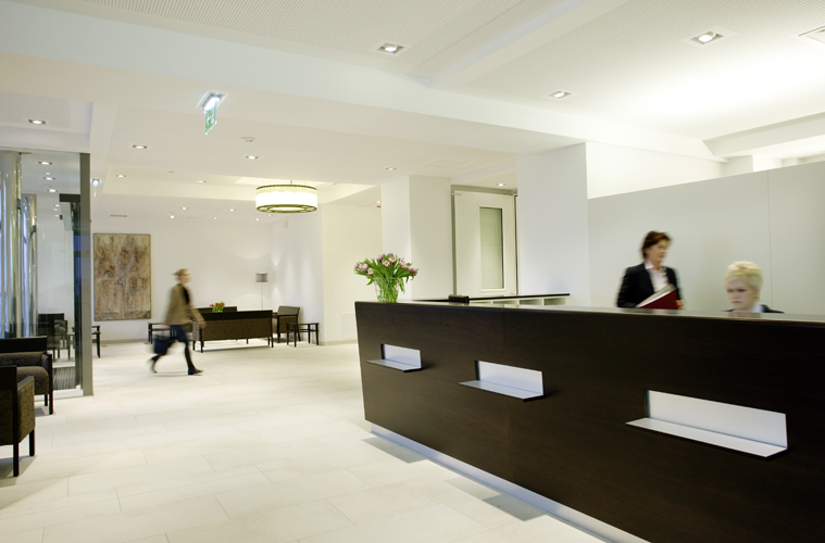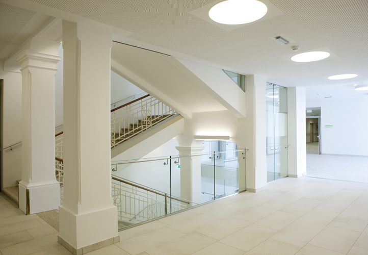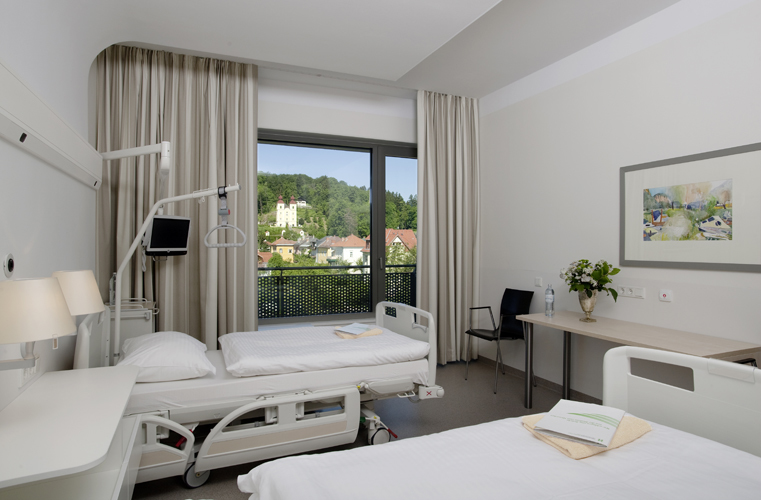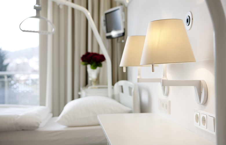 Ein Krankenhaus ist ein Nutzgebäude, in dem die Funktionalität im Vordergrund stehen muss. Abgesehen von dieser Zweckerfüllung darf der architektonische Anspruch allerdings nicht in den Hintergrund gestellt werden. Der Patient, dessen Genesung im Vordergrund steht, hat einen besonders hohen Anspruch an optimal gestaltete Räume. Nicht nur das visuelle Erscheinungsbild der Patientenzimmer, sondern auch Faktoren wie Privatsphäre, Komfort, Akustik, die Haptik von Oberflächen bis hin zur Lichtfarbe der Beleuchtungskörper wurden bei den Überlegungen der Architekten aus der Sicht des Patienten angestellt. (Text: Architekten)
