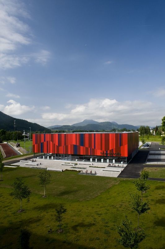 Eine Blumenhalle für „Funder-City“.„Funder-City“, das ist St. Veit an der Glan in Kärnten, wo schon 1939 das erste Faserplattenwerk Österreichs entstand, wo die Coop Himmel- b(l)au 1988/89 einen dekonstruktiven baulichen Akzent setzte und wo seit dem vergangenen Jahr auch ein neues angewandtes Beispiel der Produktpalette aus dem Haus Fundermax – in Szene gesetzt von Frediani + Gasser Architettura – zu besichtigen ist.