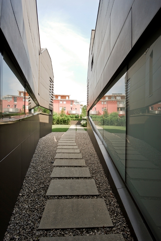 So können Wege in der Wohneinheit selbst kurz gehalten werden und die strassenseitige Ansicht erscheint durch ihre Strukturiertheit kleiner.