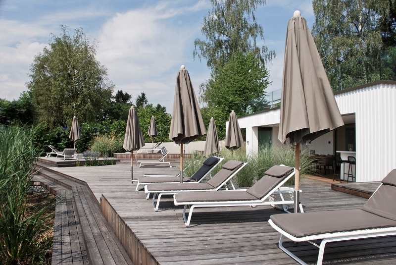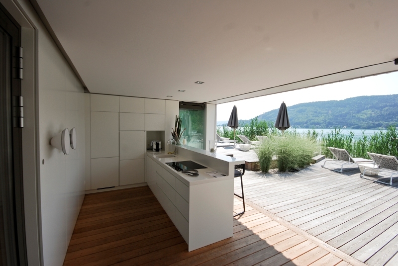Der Seebereich mit Küche, Sauna und vorgelagerter Liegeterrasse steht allen Bewohnern zur Verfügung.
