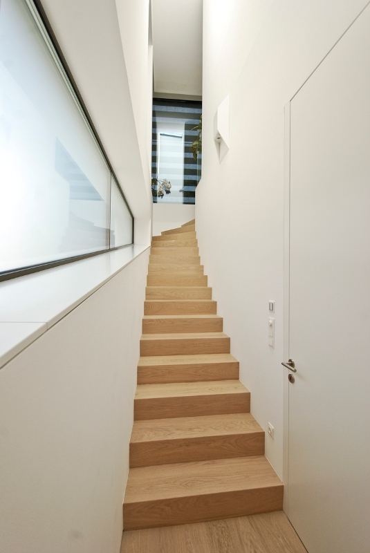 Es wurde darauf Wert gelegt, den Seeblick von möglichst vielen Räumen und Situationen zu ermöglichen, ebenso allen 5 Wohnungen ein Maximum an Seeblick zu verschaffen.