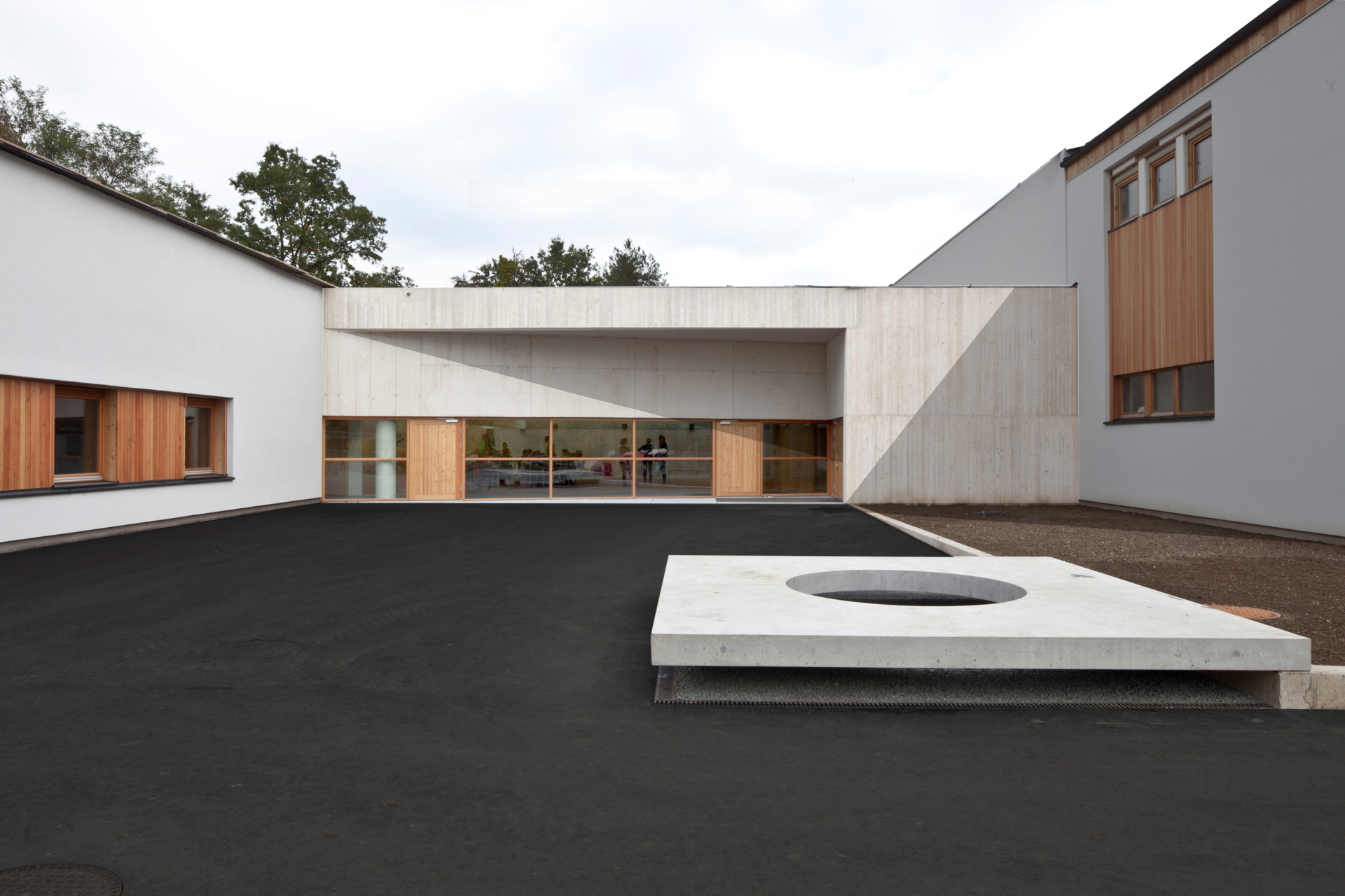 Alle Klassenräume befinden sich nun im Südtrakt und genießen gleiche Licht- und Schallverhältnisse. Sonderunterrichtsräume wie Küche, Musik- und EDV-Raum finden im Nordtrakt Platz. Durch die direkte Anordnung angrenzend an das Foyer entstehen Synergien für die Nachmittagsbetreuung, die vorrangig hier stattfinden wird, sowie für den Musikraum, der für Veranstaltungen in das Foyer erweitert werden kann.