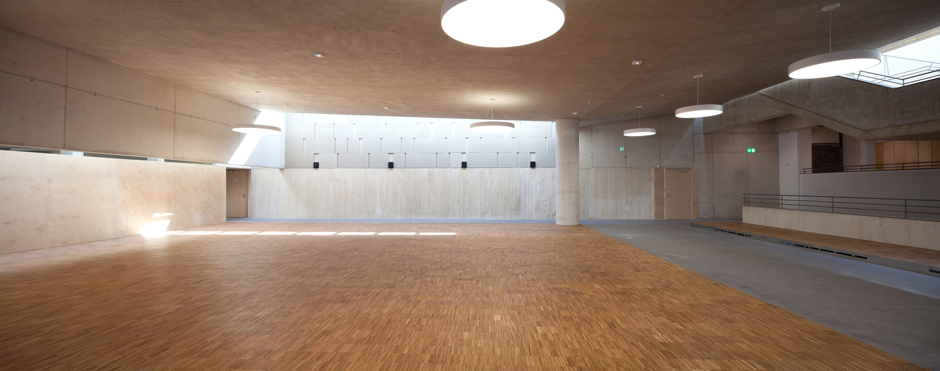 Der Gymnastiksaal bleibt unverändert, jedoch wird der Geräteraum auf die Südseite verlegt, um den Nordtrakt für die Sonderunterrichtsräume freizugeben. Die Mitnutzung durch den Hort bleibt unverändert.