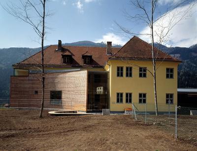 Die Sanierung der Volksschule erfolgt in behutsamer Weise. Kindergarten und Direktion sind westseitig an sie angefügt.