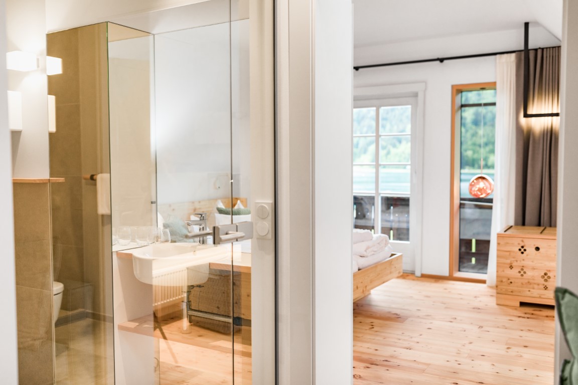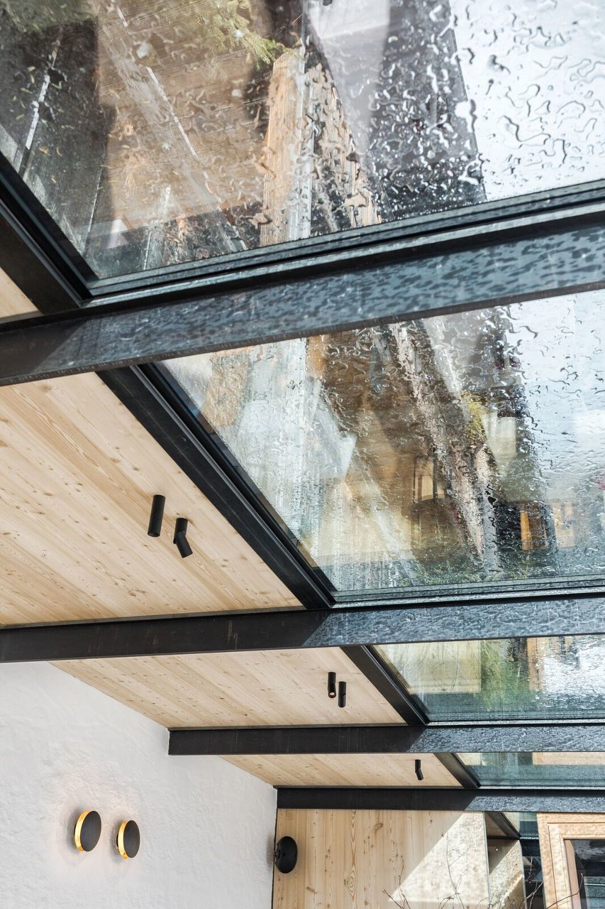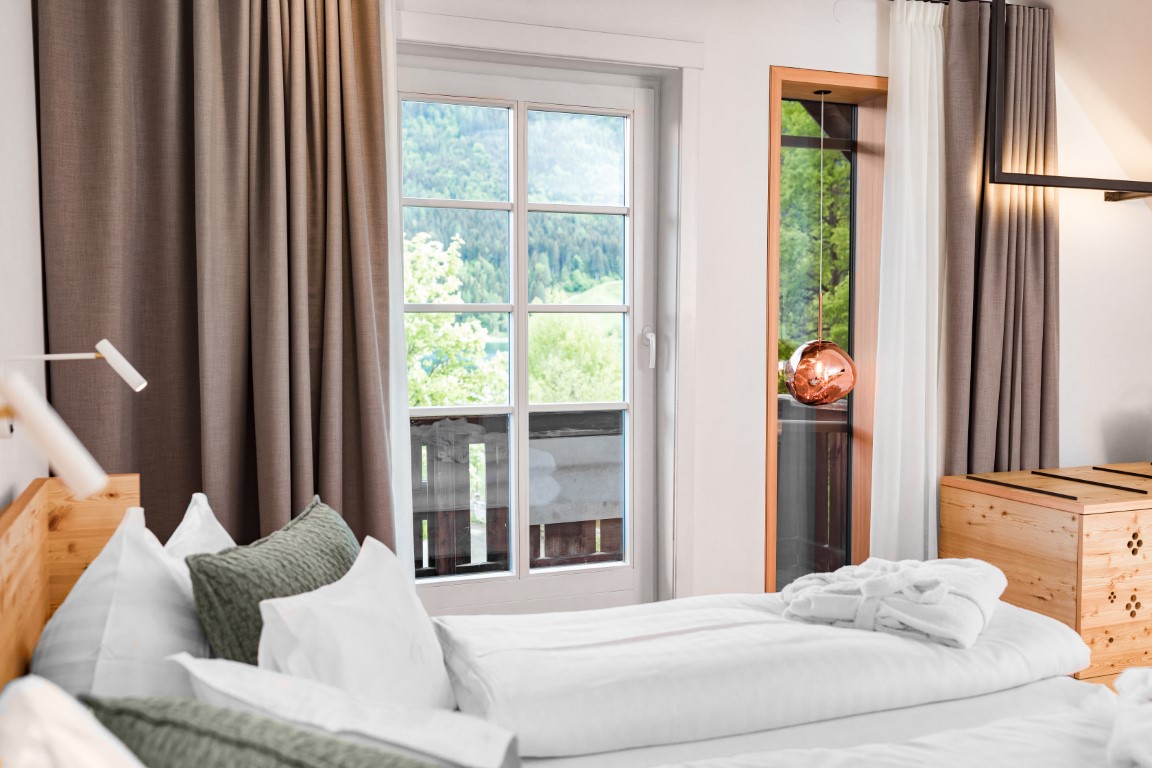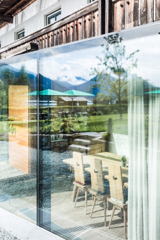 Ein junges Paar gibt das Großstadtleben auf, um den elterlichen Betrieb in Neusach am Weissensee zu übernehmen. Rasch wachsen die beiden in ihre neuen Rollen als Landwirte, Hotel- und Restaurantbetreiber und verstehen die Aufgabe als ganzheitliche Verantwortung: für eine nachhaltige touristische Entwicklung, für die Menschen vor Ort, für die Pflege von Identität und Baukultur. Sie erhalten den bäuerlichen Betrieb und errichten Schritt für Schritt zuerst für sich ein Wohnhaus als Ergänzung des Ensembles, sie bewahren und sanieren ein bestehendes Blockhaus, renovieren und erweitern dann das Erdgeschoß des 520 Jahre alten Haupthauses, um zuletzt dessen Obergeschoße für heutige Ansprüche zu aktualisieren und baulich neu zu ordnen.Der sorgsam detaillierte gläserne Zubau ans Haupthaus ist Eingangsbereich, Restauranterweiterung und Wohnzimmer für die Gäste. Stahl und Glas verbinden sich innen stimmig und leger mit dem Lärchenholz von Böden, Wandpaneelen und Möbeln, mit dem schwarzen Naturstein von Rezeption und Theke, mit den weißen Wand- und Deckenflächen des Bestands. Die Stühle wurden eigens entworfen und vom Tischler gefertigt, auch die Teppiche und der Großteil der Zimmerausstattung sind keine Stangenware. Neues gesellt sich zu Altem. Je nach formaler und funktionaler Anforderung geschieht das mit Respektabstand oder in enger Überlagerung, immer aber mit Maß und Ziel. Es ist keine Architektur fürs Hochglanzmagazin, nichts für oberflächliche Betrachtung. Es ist Architektur, die von innen her wirkt - in einem konkret räumlichen Sinn, weil die ursprüngliche Außenerscheinung weitgehend erhalten blieb, im übertragenen Sinn, weil in der sehr persönlichen Gestaltungsweise jene Menschen und Geschichten spürbar werden, die diesen Betrieb prägen und beleben.