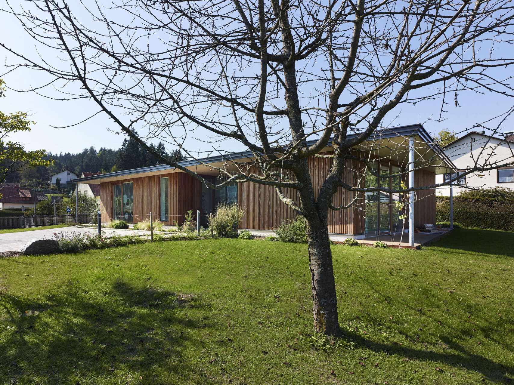 Die Innenräume werden durch Ausblicke in den Garten aufgewertet und bieten aufgrund ihrer Belichtung und der verwendeten Materialien eine hohe Aufenthaltsqualität.