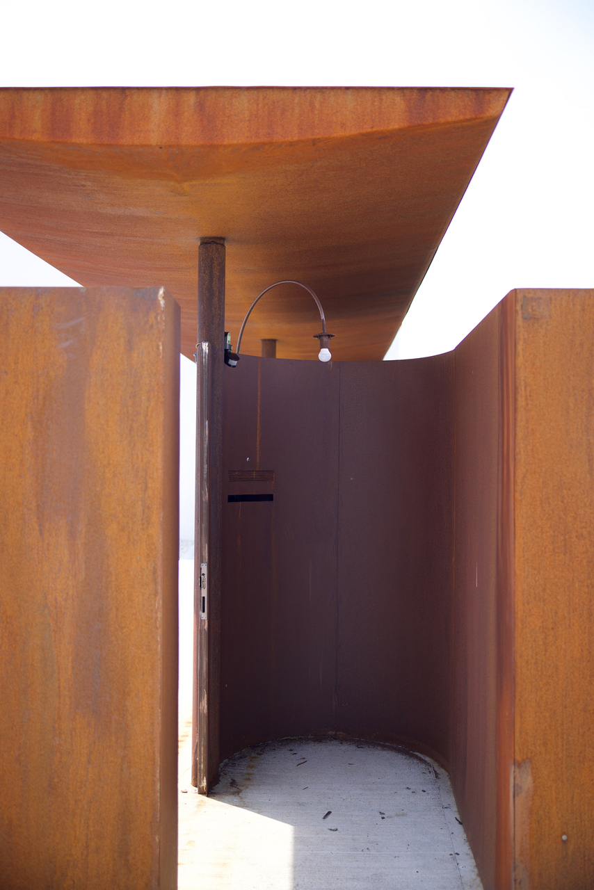 Auch das Grundstück selbst gleicht einem Quadrat. Geviertelt. An der Strasse im Nordwesten der Staudengarten als Sichtschutz. Getrennt durch den schirmartigen Zugang der bekieste Vorplatz samt mittigem Schattenbaum im Nordosten. Dahinter die „Garage“ im Südosten. Und - vor den alten Blechtoren - schließlich der kleine Garten mit Rose im Südwesten.