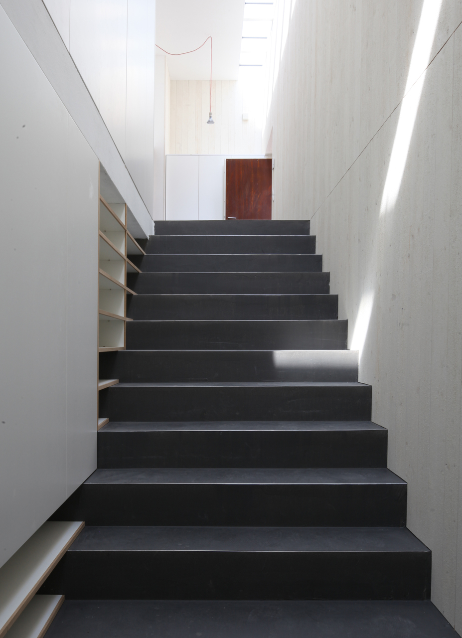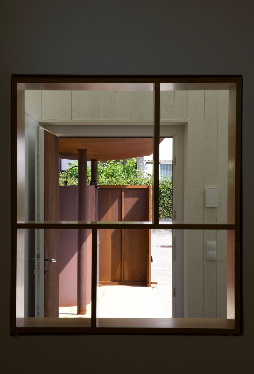 Anstelle der verbogenen Blechtore entstehen durch das Spiel mit der Leibung zwei winzige Terrassen. So gewinnt die doch recht nahe Nachbarschaft ein wenig an Abstand.